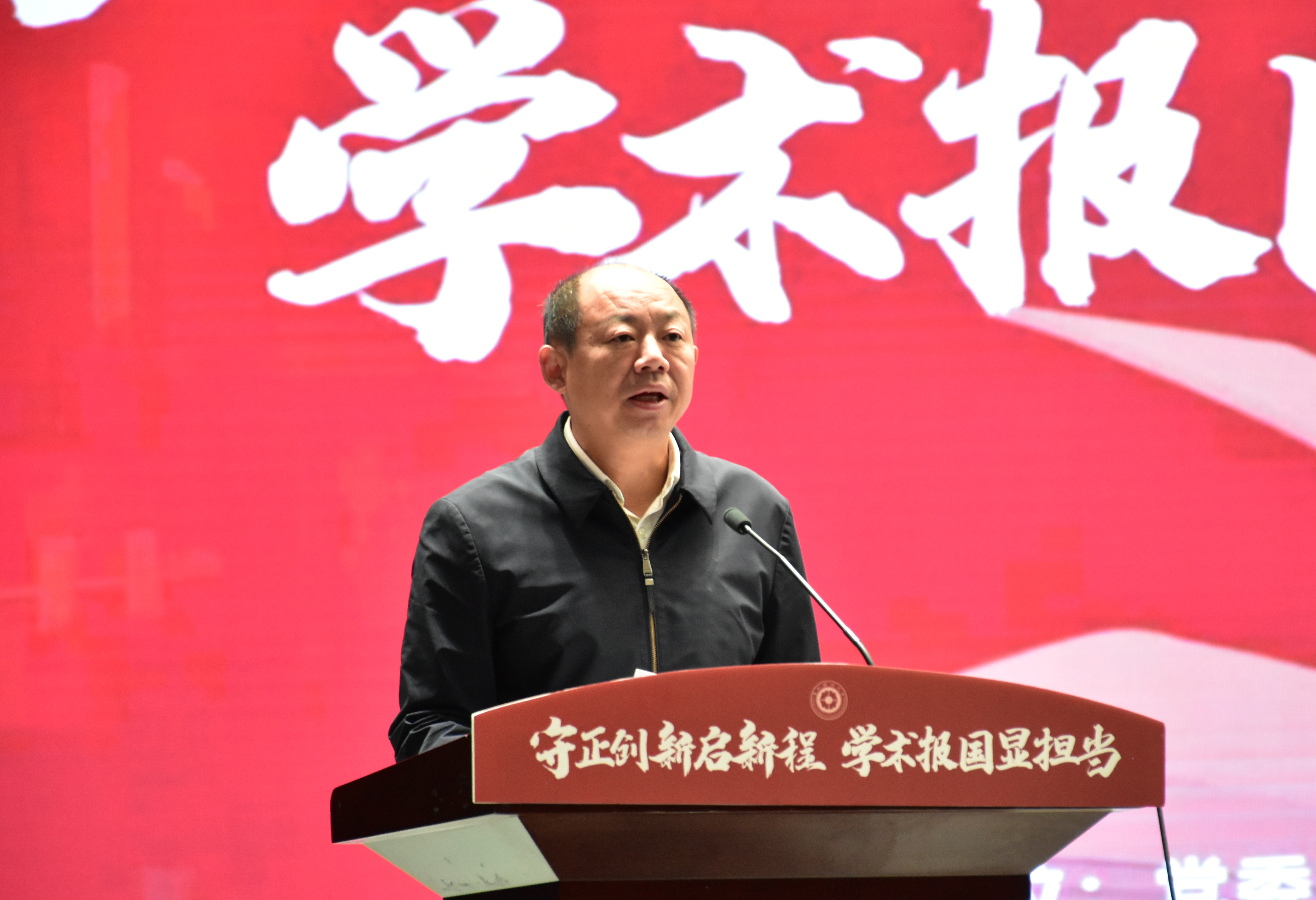 开幕式上,李汉文致辞。他指出,从首届学术文化节播撒的求知种子,到如今校院联动的学术盛宴,“鼎新”学术文化节已成为彰显我校“学术立校”理念的重要窗口,成为传承“厚德、博学、笃行、鼎新”校训精神的生动载体。他强调,学术文化节是学校深入践行"学术立校"办学理念的重要举措,也是服务贵州高质量发展的生动实践。大家要以“问渠那得清如许”的求知欲深耕学术、以“绝知此事要躬行”的行动力践行使命、以“百花齐放春满园”的胸怀促进交融,以此次学术文化节为契机,让学术的种子生根发芽,让创新的火花点亮征程,共同书写贵财学术发展的新篇章,为中国式现代化贵州实践贡献更多智慧与力量。
