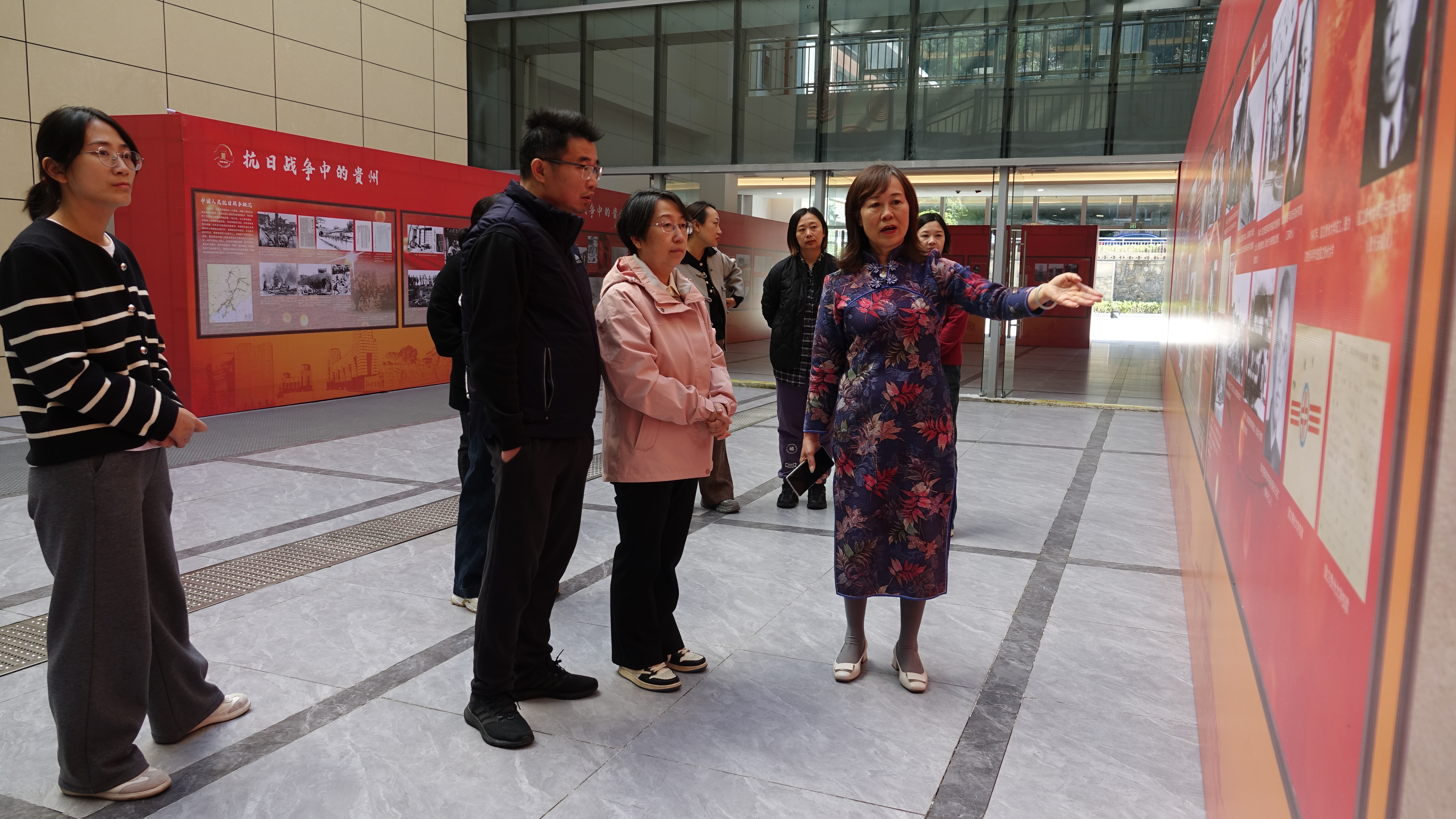 赵子铱强调,档案是历史的真实记录,是民族记忆的重要传承,抗战精神是中华民族的宝贵精神财富。此次展览为全校师生提供了一次难得的学习机会,传承和弘扬伟大抗战精神,增强师生的历史责任感和时代使命感。她对下一步工作提出三点要求:一是通过展览,让档案“活”起来,把档案保管好、利用好,记录好、留存好,更好地服务学校工作大局,服务师生校友;二是要充分发挥档案育人功能,厚植师生爱党爱国爱校情怀;三是深挖贵州抗日战争脉络,打造贵财育人精品课程。