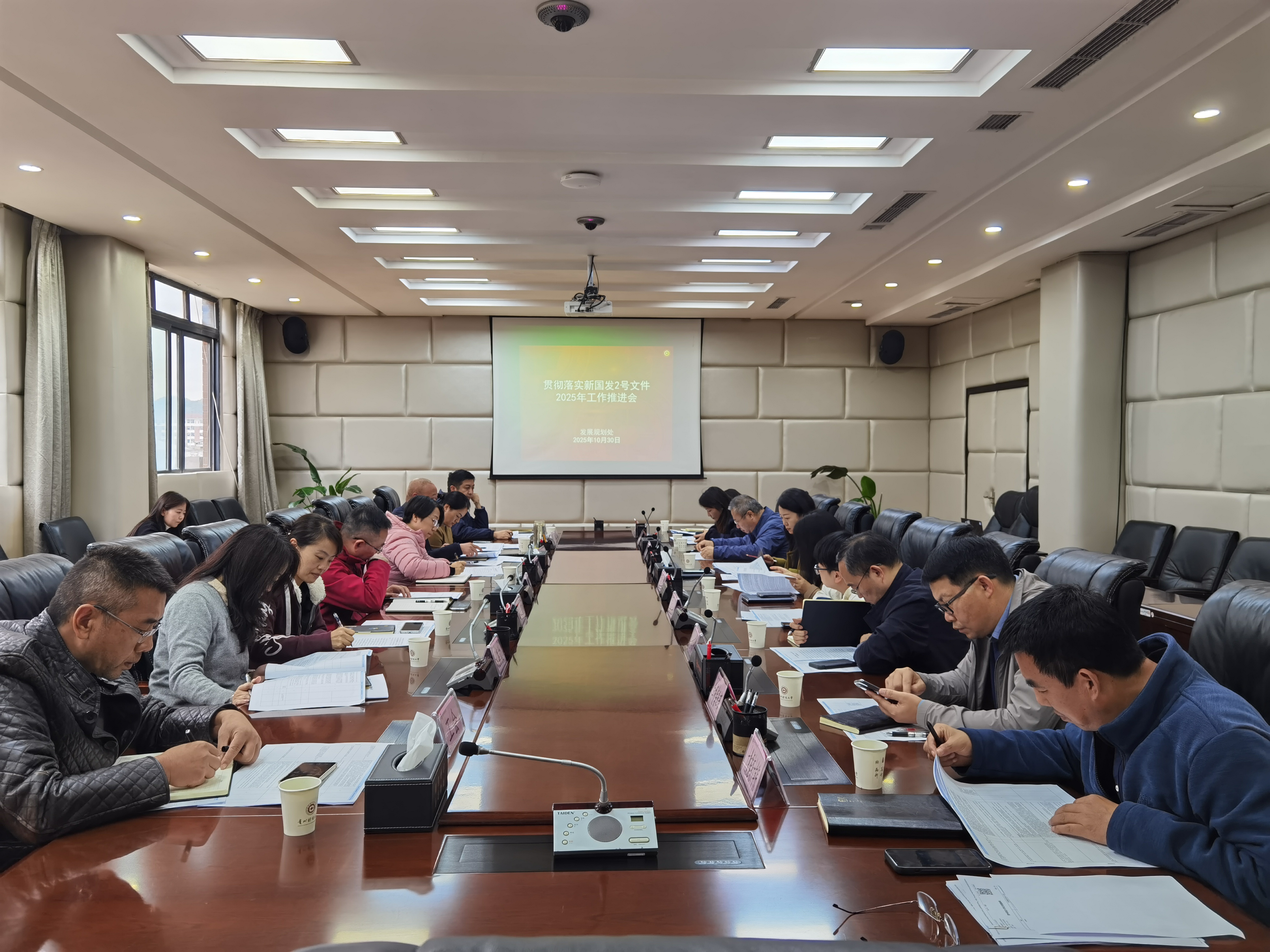会上,发展规划处首先就贯彻落实新国发2号文件的背景意义与总体要求作了系统阐述,明确了当前工作推进的总体思路和重点任务。随后,各牵头部门围绕分管领域的工作推进情况作了详细汇报,重点针对尚未完成的工作任务进行了深入剖析,并就下一步推进计划作了具体说明。