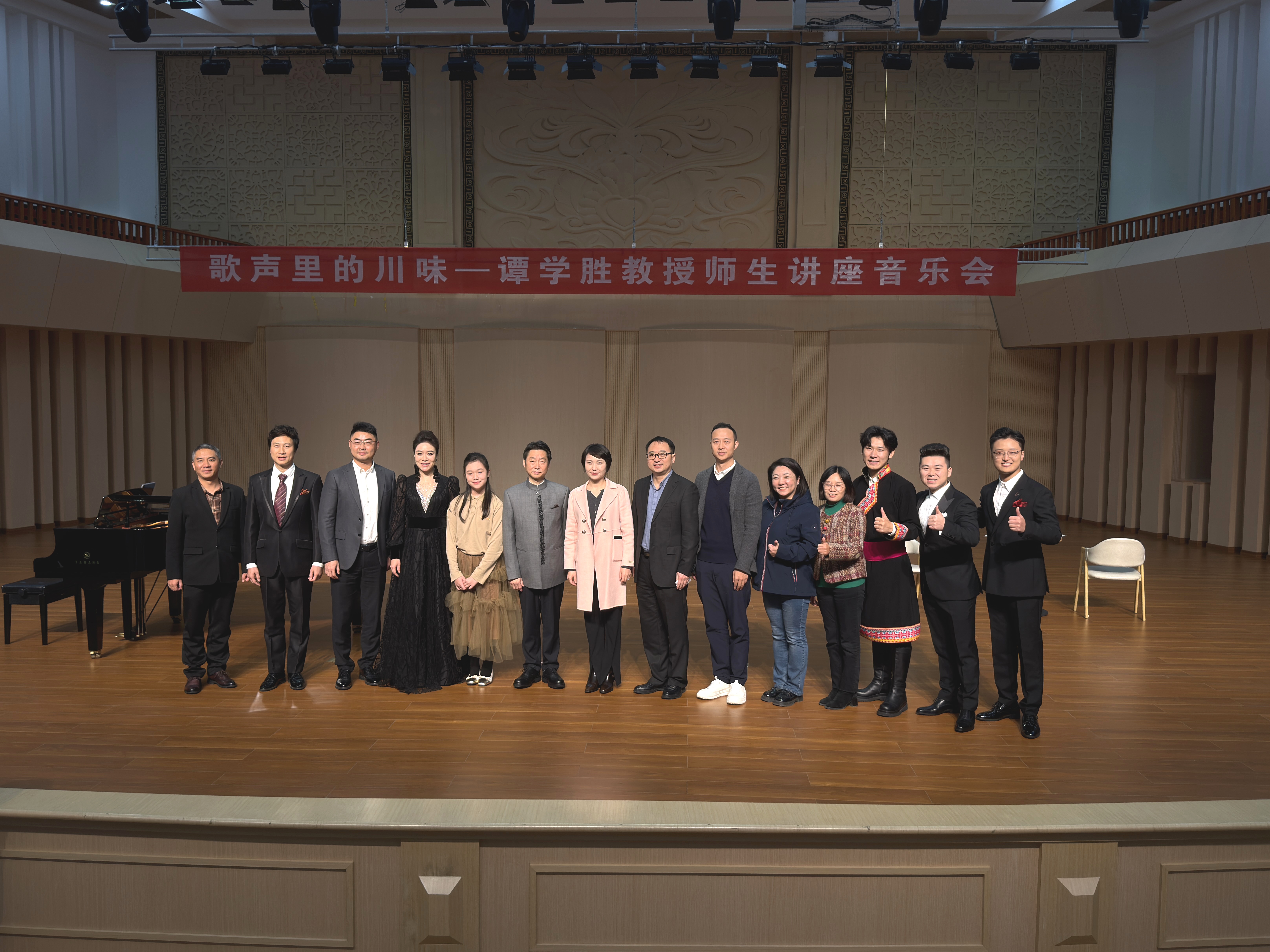 本次活动由二级教授、四川音乐学院党委常委、副院长谭学胜领衔,其弟子团队阵容亮眼。作为三届中国音乐“金钟奖”评委、中国民族声乐艺术研究会副会长,谭学胜教授深耕民族声乐教育多年,培养出众多行业顶尖人才。