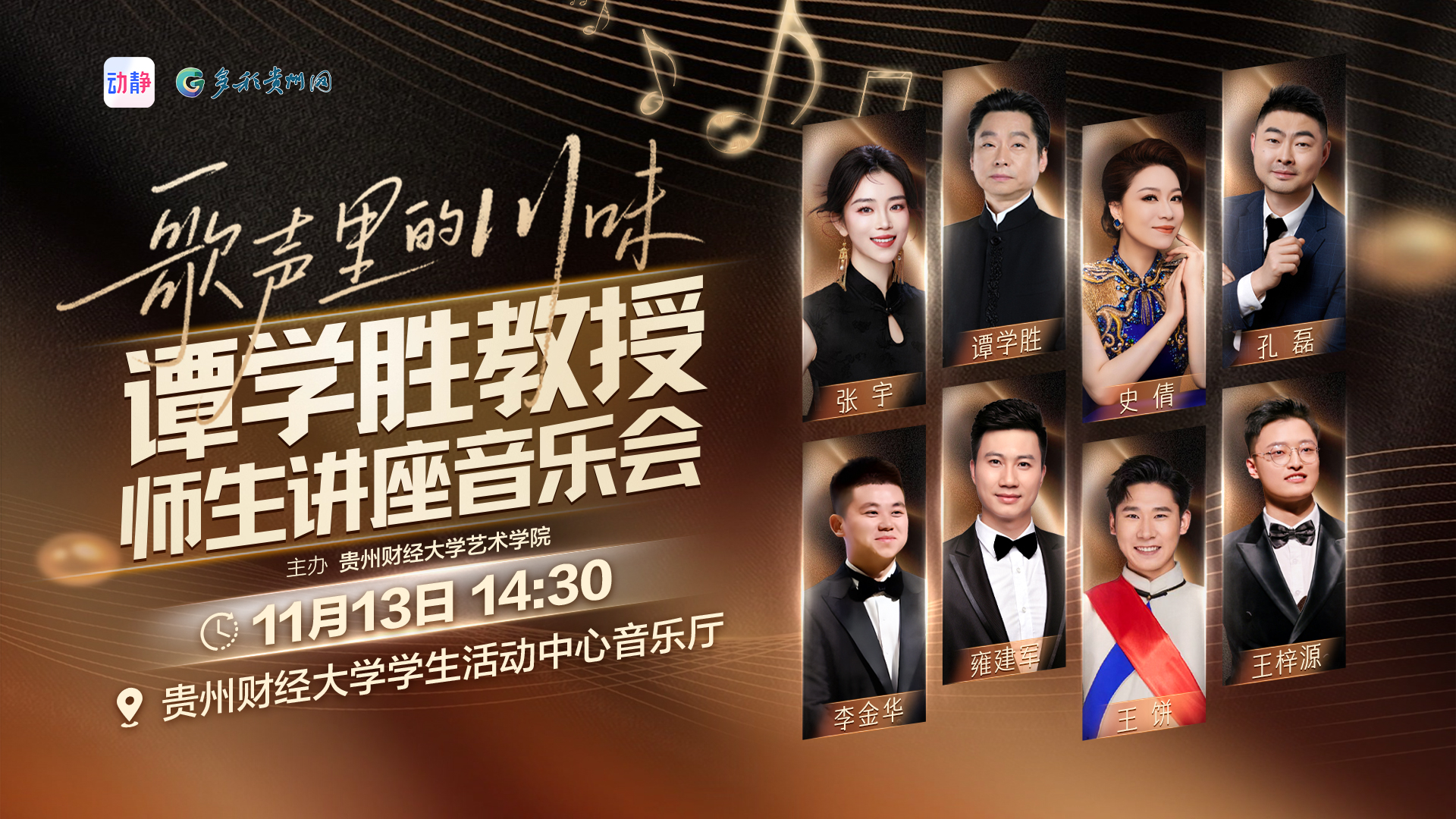 本网讯:(艺术学院 秦宇佳 图文报道)11月13日,由学校主办、艺术学院承办的“歌声里的川味——谭学胜教授师生讲座音乐会”在学生活动中心音乐厅温情开演。副校长徐艺,艺术学院领导班子莅临现场,各兄弟院校师生齐聚一堂,共享这场兼具艺术质感与文化温度的视听盛宴。活动同步通过动静贵州平台线上直播,让更多观众跨越空间感受川味民歌与民族声乐的独特魅力。