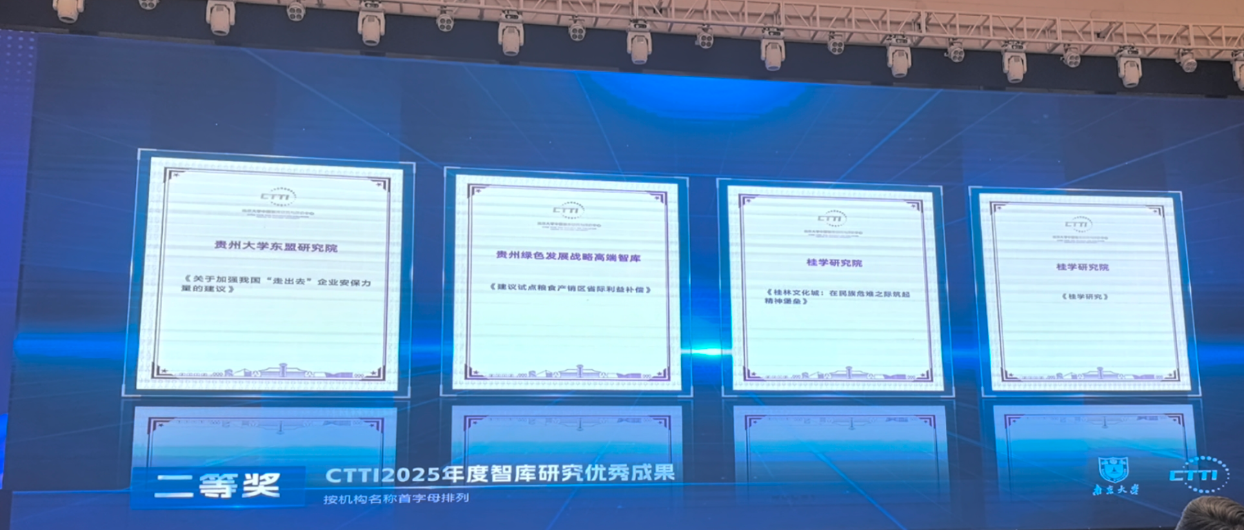 论坛发布了中国智库索引(CTTI)2025年度智库建设最佳案例和智库研究优秀成果。本年度共征集到来自全国367家机构的367份建设案例和622家机构的1014份智库研究成果。我校智库成果从中脱颖而出,贵州绿色发展战略高端智库申报的《“四轮驱动”助力智库成果多元转化的创新实践——贵州绿色发展战略高端智库的探索与启示》获CTTI2025年度智库建设最佳案例标杆案例,智库团队研究成果《贵州省加快打造世界旅游目的地的构想》(作者:张洪昌、王伟梅、张再杰)获CTTI2025年度智库研究优秀成果一等奖,智库团队研究成果《建议试点粮食产销区省际利益补偿》(作者:张洪昌、王伟梅、姚天香)获CTTI2025年度智库研究优秀成果二等奖。