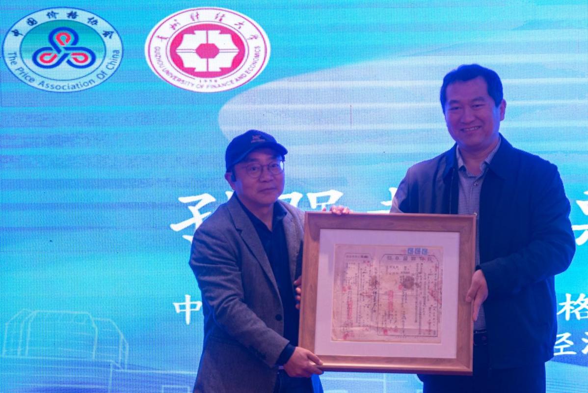 中国价格协会高校价格理论与教学研究会副会长、北方工业大学经济管理学院副院长孙强教授向我校捐赠地契等各类票据31份,我校图书馆、票据博物馆(票据研究中心)馆长杨帆代表票据博物馆接受捐赠并向孙强教授颁发捐赠证书。