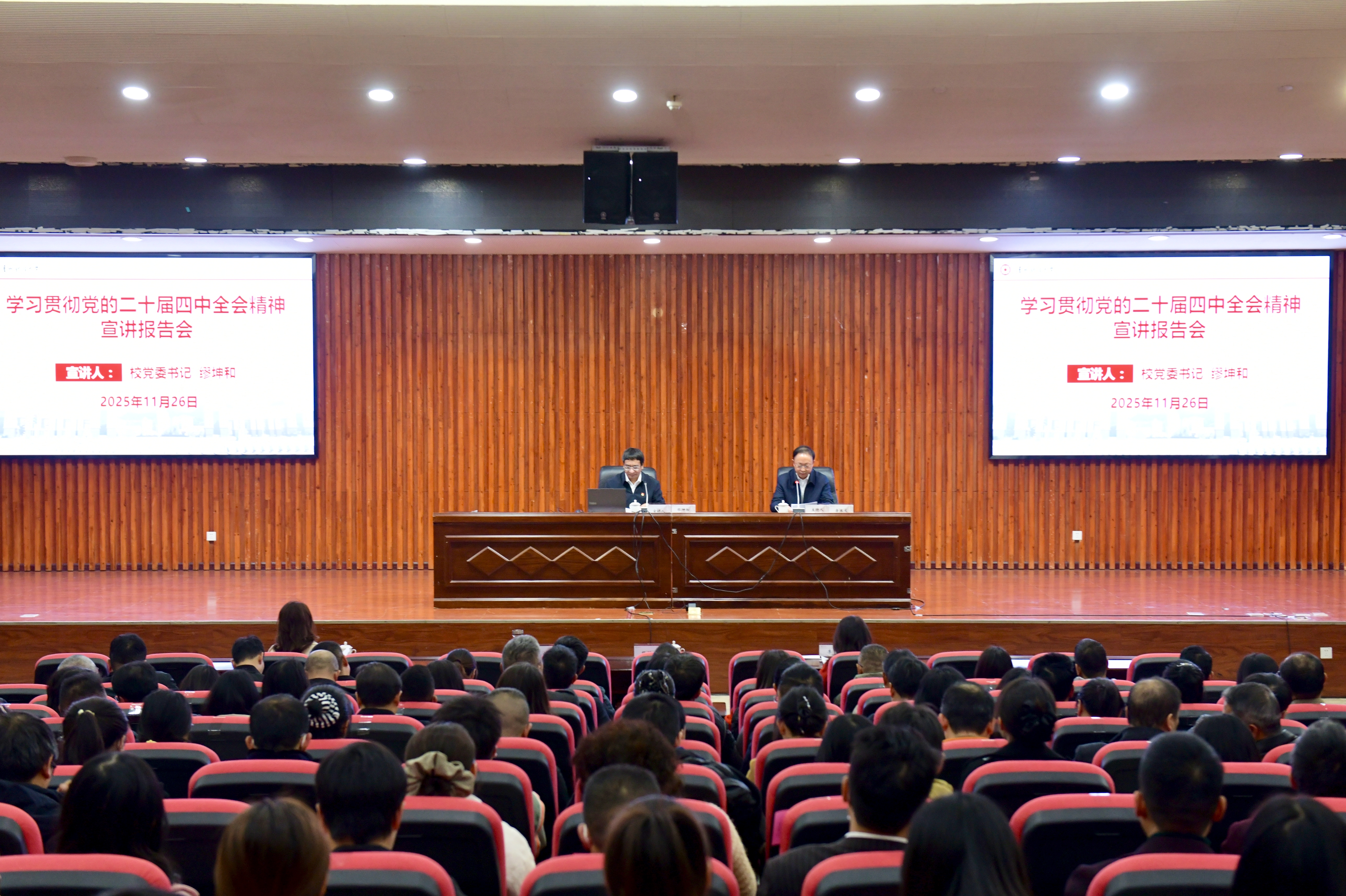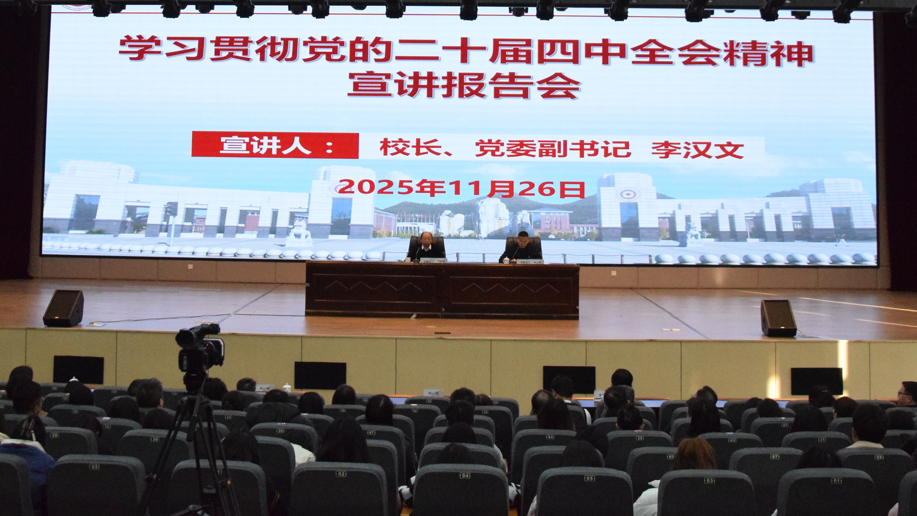 宣讲围绕党的二十届四中全会整体情况、准确把握“十五五”时期在基本实现社会主义现代化进程中的重要地位、深刻领会“十五五”时期经济社会发展的指导方针和主要目标、全面理解“十五五”时期经济社会发展战略任务和重大举措、坚持和加强党的全面领导,凝聚起推进中国式现代化的磅礴力量五个方面展开,结合省委十三届八次全会精神和学校发展实际,就中央、省委全会精神在学校的贯彻落实作出部署,为学校下一步发展指明了方向、明确了路径。同时,对同学们提出几点希望,希望同学们做理想远大、信念坚定的模范,做刻苦学习、锐意创新的模范,做艰苦奋斗、无私奉献的模范,做崇德向善、严守纪律的模范,成为让党放心、让人民满意的新时代建设者。