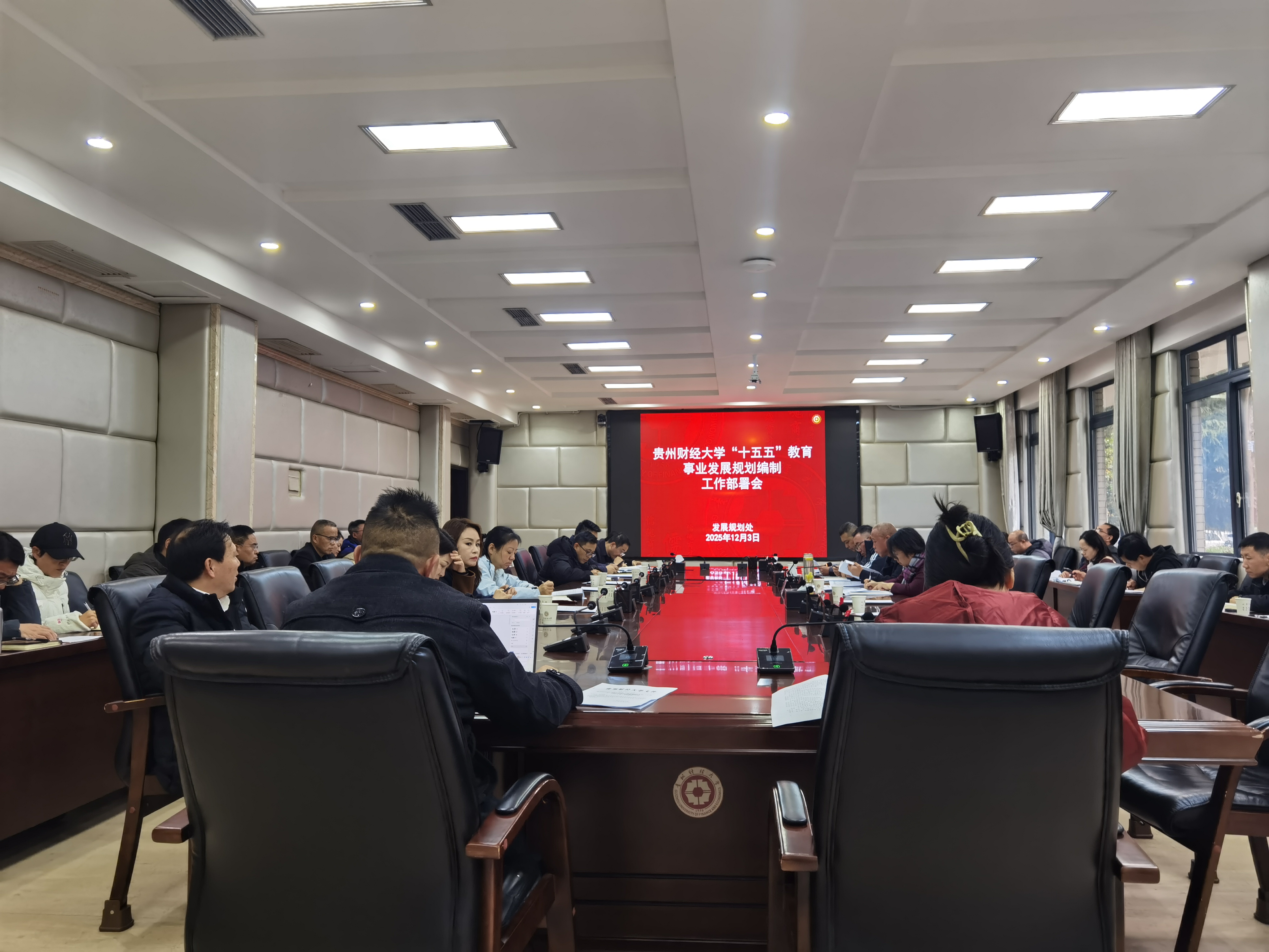 本网讯:(发展规划处(学科建设办公室) 李梦然 报道|摄影 任冬梅)为科学谋划学校未来五年发展蓝图,统一思想、凝聚共识,全面启动“十五五”规划编制工作,12月3日上午,学校在立德楼104会议室召开贵州财经大学“十五五”教育事业发展规划编制工作部署会。副校长赵子铱出席会议并讲话,相关职能部门、各学院主要负责人参加会议。会议由发展规划处(学科建设办公室)主持。