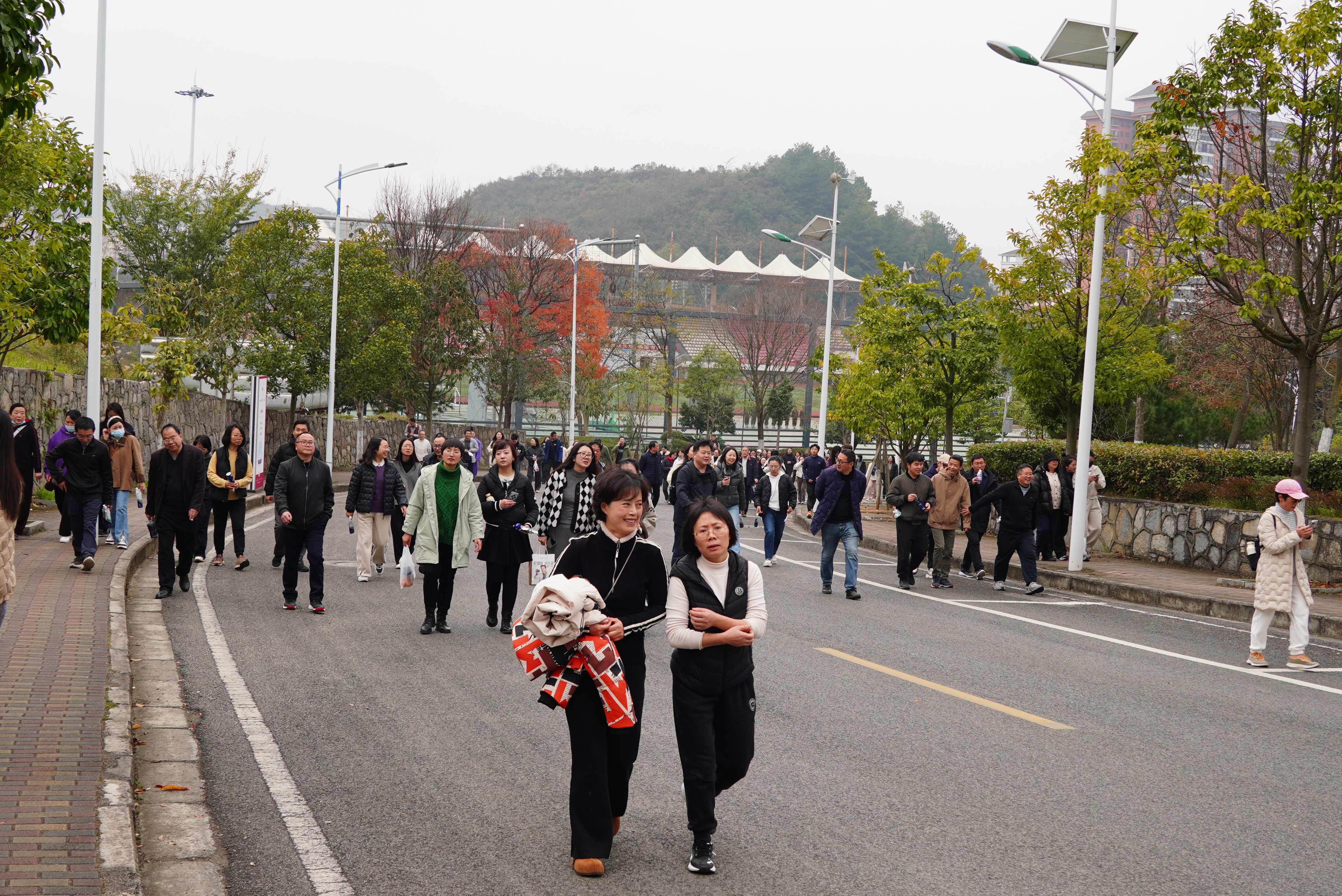 活动全程约3.7公里。活动伊始,教职工们齐聚体育馆。校长李汉文为活动致辞,校党委副书记唐本文鸣笛发令。笛声响起后,大家精神饱满、兴致高昂地有序出发,沿公租房侧环山公路健步前行。冬日的山路上,教职工们三五成群,步履轻快,脸上洋溢着愉悦的笑容,一边欣赏校园美景,一边交流工作与生活心得,一扫平日工作的疲惫。沿途欢声笑语不绝,气氛轻松热烈。