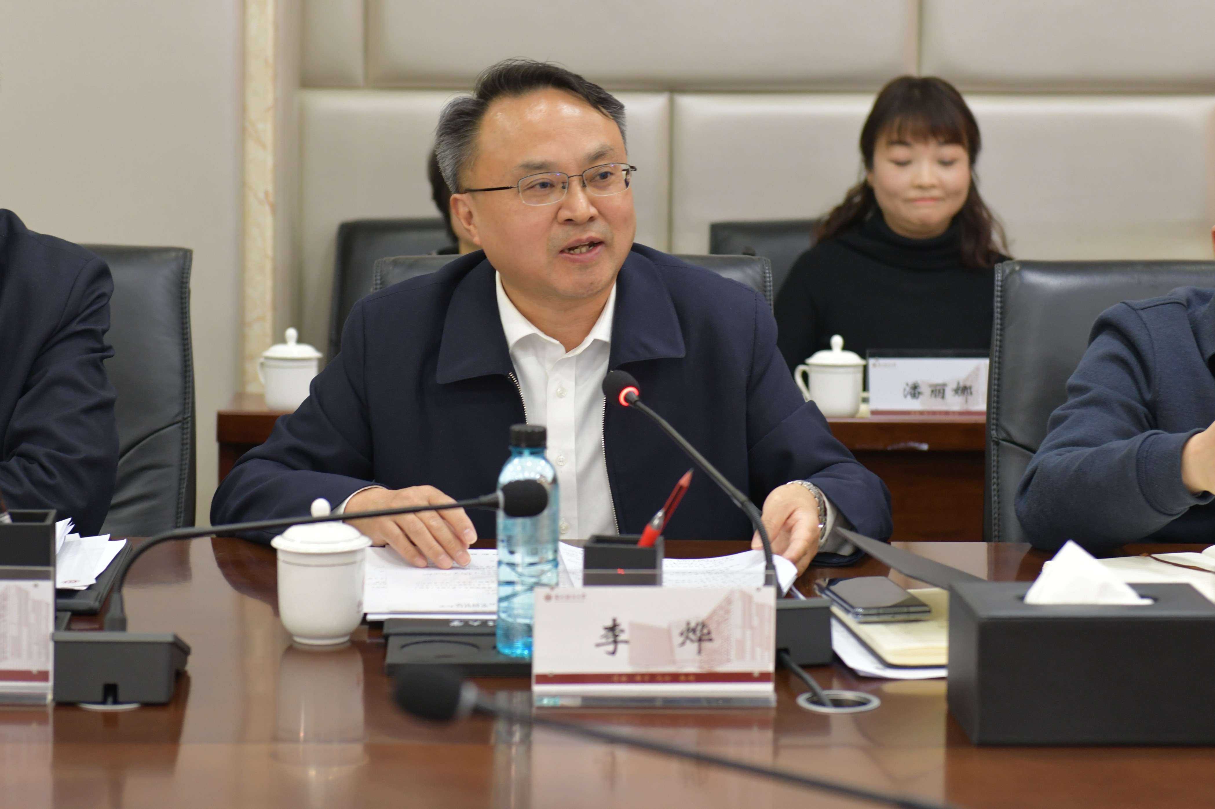 参观结束后,双方在我校立德楼104会议室召开党建结对共建交流座谈会。会议由我校副校长、党委常委李烨主持,两校有关校领导、职能部门负责人及二级学院党委书记共计37人参会。在双方介绍参会人员后,首先由我校党委常委、党委组织部部长何伟系统介绍了学校党建工作情况。接着与会人员围绕共建重点任务,就2025年工作进展与下一步计划进行了深入交流研讨。贵州黔南科技学院理事会理事长杜逢祥从教师队伍建设、研究生培养等方面提出了合作设想。
