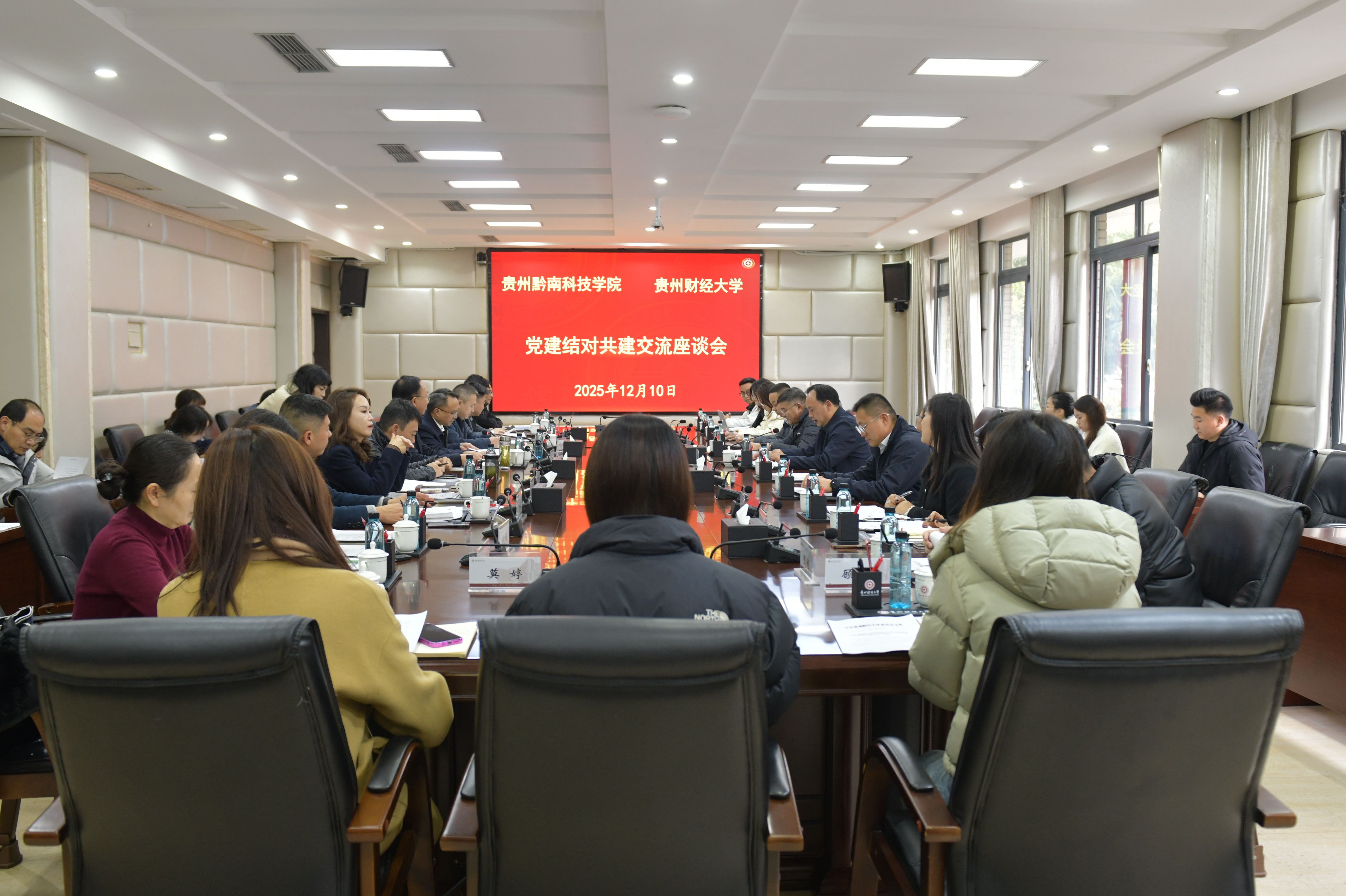本网讯:(党委组织部 李泽庆 报道|摄影 陈艺文 令狐语嫣)12月10日,我校与贵州黔南科技学院举行党建结对共建交流座谈会。双方围绕“党建引领、融合发展”主题,旨在通过资源共享、优势互补,共同探索走出一条公办高校和民办高校党建结对共建的新路子。