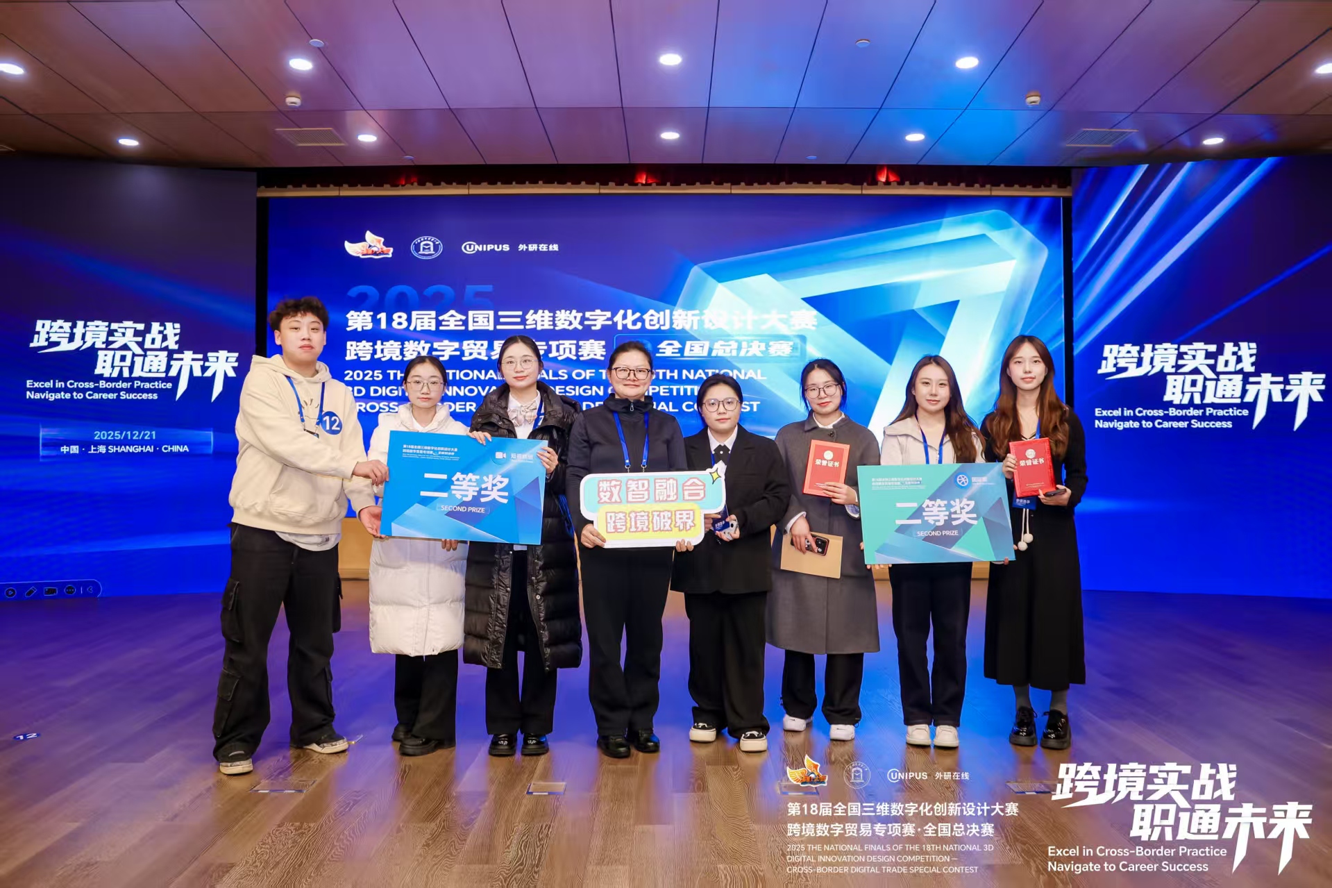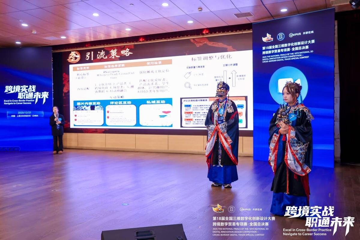 本网讯:(国际学院 沙静 图文报道)近日,以“跨境实战,职通未来”为主题的第18届中国三维数字化创新设计大赛跨境数字贸易专项赛在上海对外经贸大学圆满结束。我校参赛队伍在激烈的竞争中脱颖而出,斩获佳绩。国际学院四支代表队在国内短视频赛道、国内直播赛道、国际赛道斩获两枚银奖、两枚铜奖,工商管理学院代表队在国内直播赛道斩获一枚银奖。