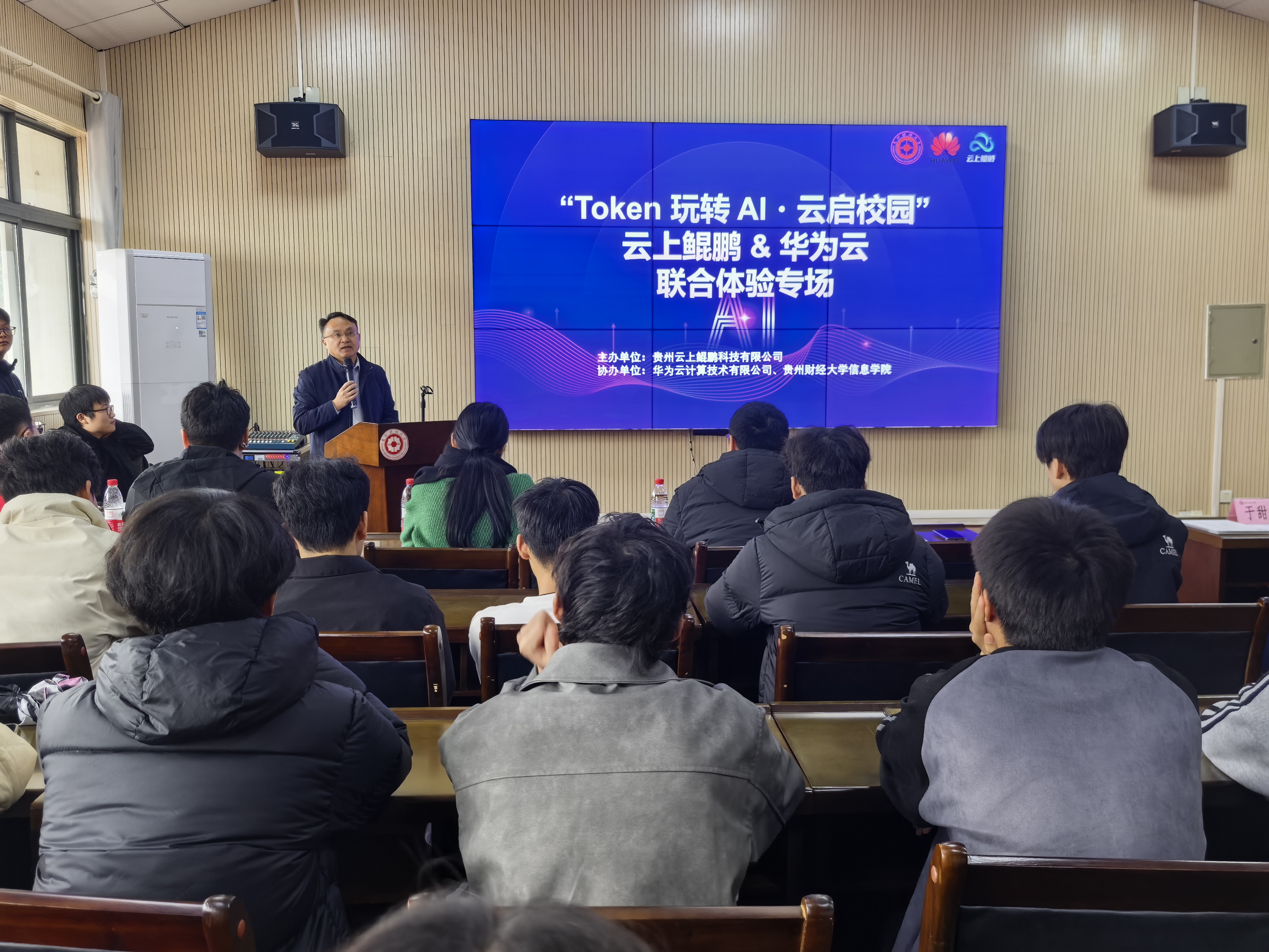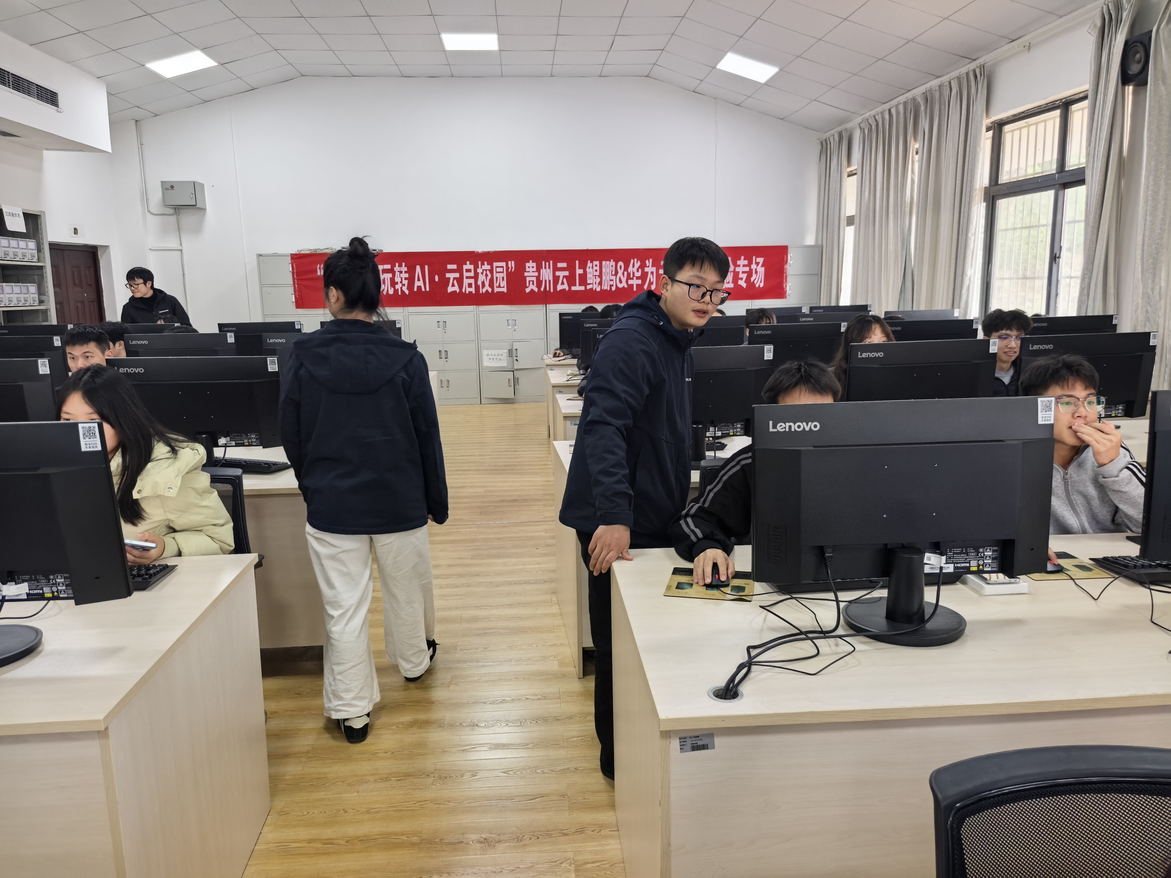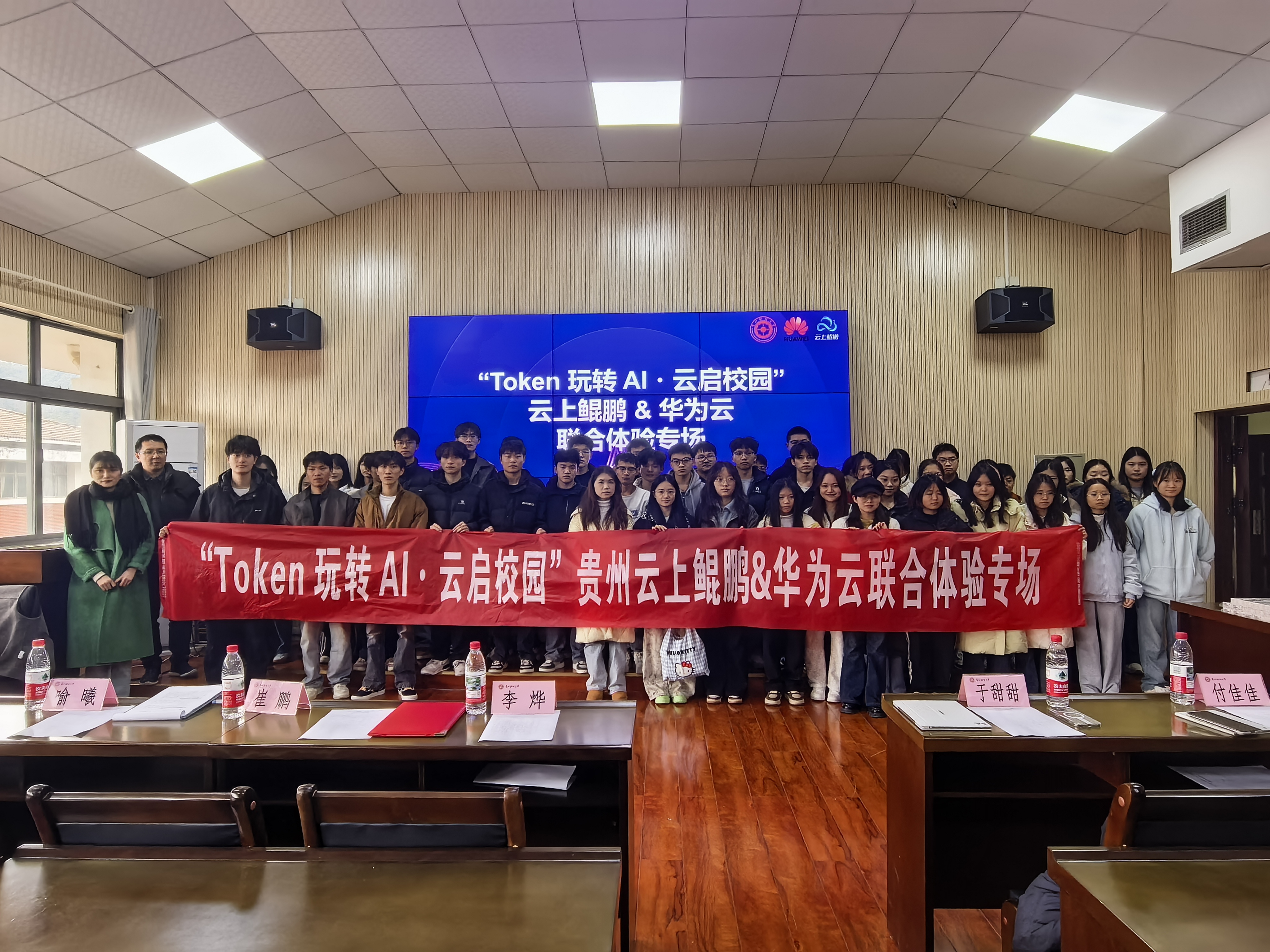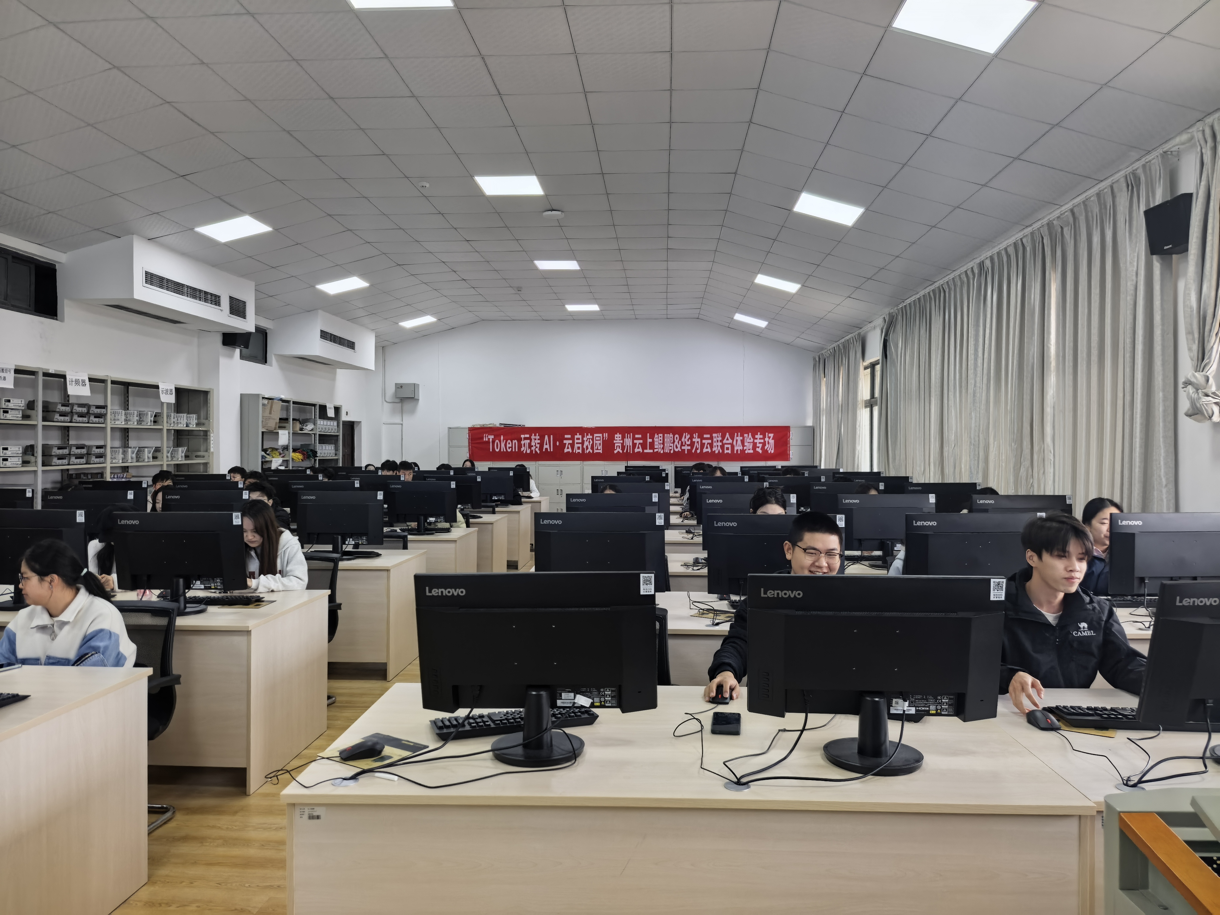本网讯:(信息学院 李杰 图文报道)当前,数字经济浪潮席卷全球,AI 技术已成为驱动产业升级的核心引擎,云计算作为 AI 技术落地的核心底座,正深度融入各行各业。为进一步提升学生实践能力,帮助学生掌握职场刚需技能,明晰本地产业岗位方向,12月23日,信息学院联合贵州云上鲲鹏有限公司、华为云计算技术有限公司,在志学楼 506、508实验室成功开展 “Token 玩转 AI・云启校园” 联合体验专场活动。副校长李烨,信息学院副院长崔鹏、信工系副主任兼院长助理喻曦出席活动,学院 2023级50名学生参与此次体验。