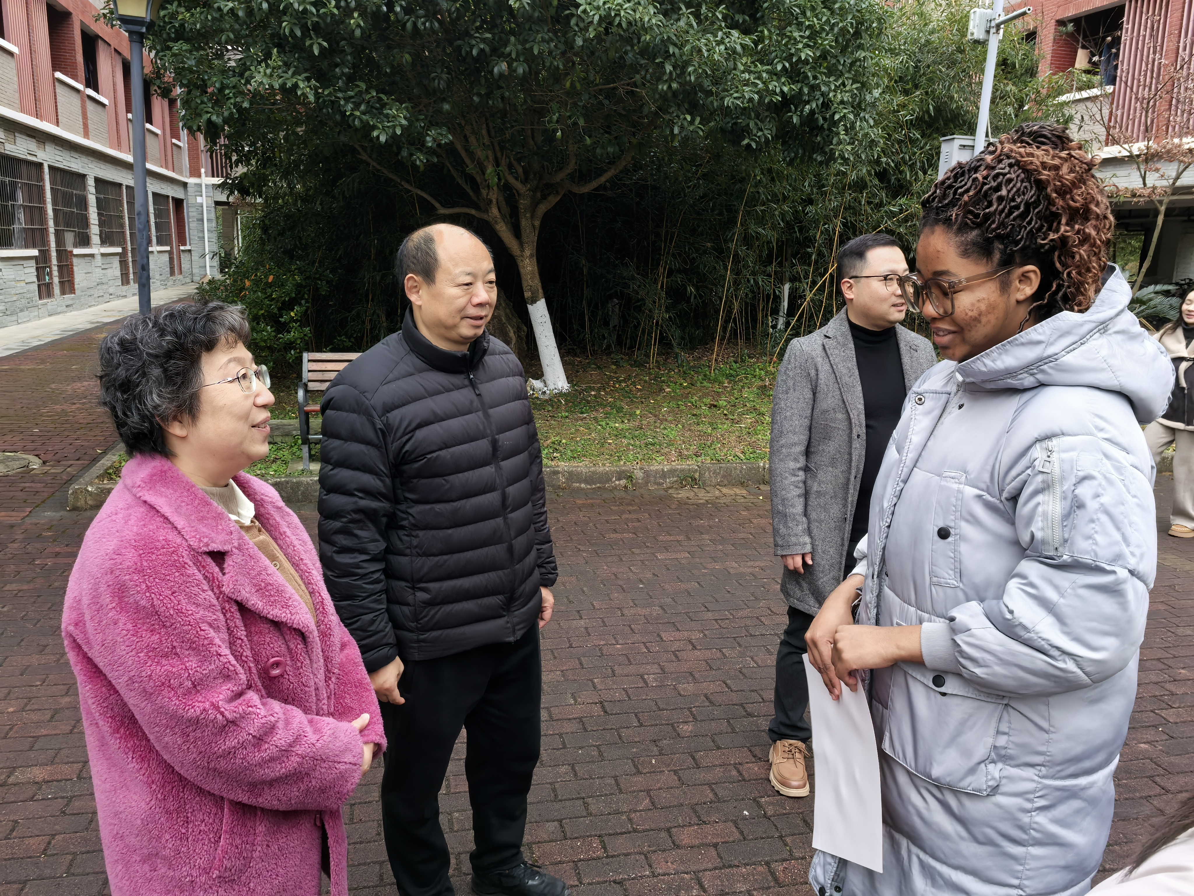 鉴于国际学生家乡距离遥远、多数选择留校过节的实际情况,学校高度重视留校国际学生的生活保障与安全管理工作。看望中,李汉文校长、赵子铱副校长与学生们亲切交谈,详细询问其日常生活、学业进展及假期规划,耐心倾听校园生活中遇到的困难与需求,并代表学校致以新年问候。校领导鼓励国际学生合理规划假期,深度感受中国传统节日氛围,主动与国内同学交流互动,以增进彼此了解、筑牢友谊桥梁。
