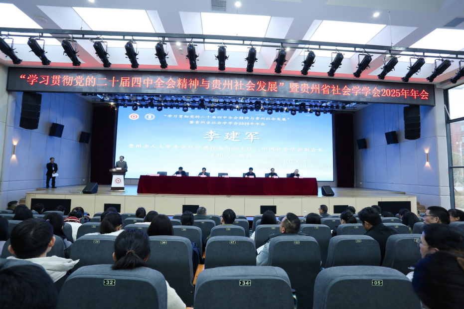 本网讯:(公共管理学院 萧椿茂、邢溦图文报道)12月31日,由贵州省社会学学会主办,我校公共管理学院、贵州省社会科学院社会研究所承办的“学习贯彻党的二十届四中全会精神与贵州社会发展”学术研讨会暨贵州省社会学学会2025年年会在我校举行。校党委书记缪坤和,贵州省人大常委会社会建设委员会主任、中国社会学会副会长、贵州大学教授李建军,贵州省社会学学会会长、贵州大学教授庄勇出席会议并致辞。贵州省社会学学会秘书长周芳苓研究员作年度工作报告。开幕式由我校公共管理学院副院长(主持工作)王武林教授主持。
