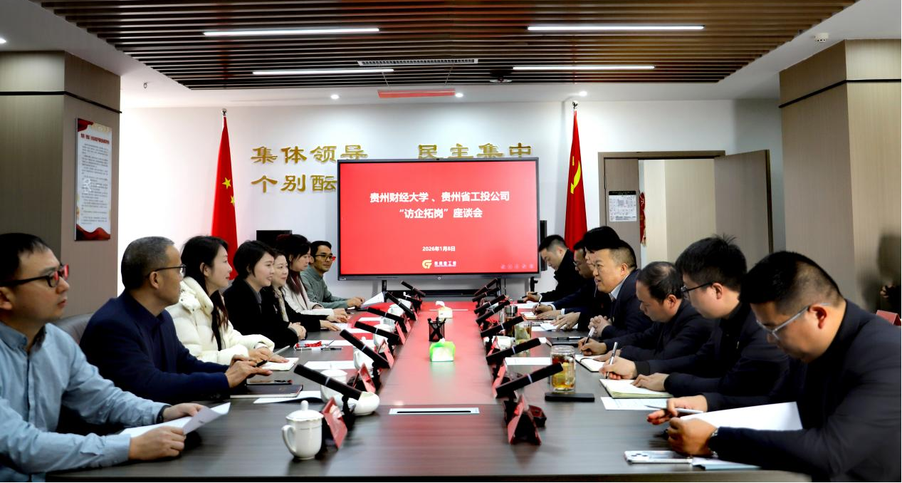 本网讯:(招生就业处 王金 图文报道)为持续深化校企合作,促进人才培养与产业需求精准对接,拓宽毕业生就业渠道,1月8日,副校长、党委常委徐艺率队赴贵州省工业投资发展有限公司开展“访企拓岗”专项行动。贵州省工业投资发展有限公司党委书记、董事长丁锐,副总经理(主持经理层工作)郑兴林,党委副书记、工会主席王琦,副总经理王勇、陈武,以及公司办公室、组织人资部、规划发展部和黔晟租赁公司、黔诚商业保理公司主要负责人,以及部分员工代表参加会议。