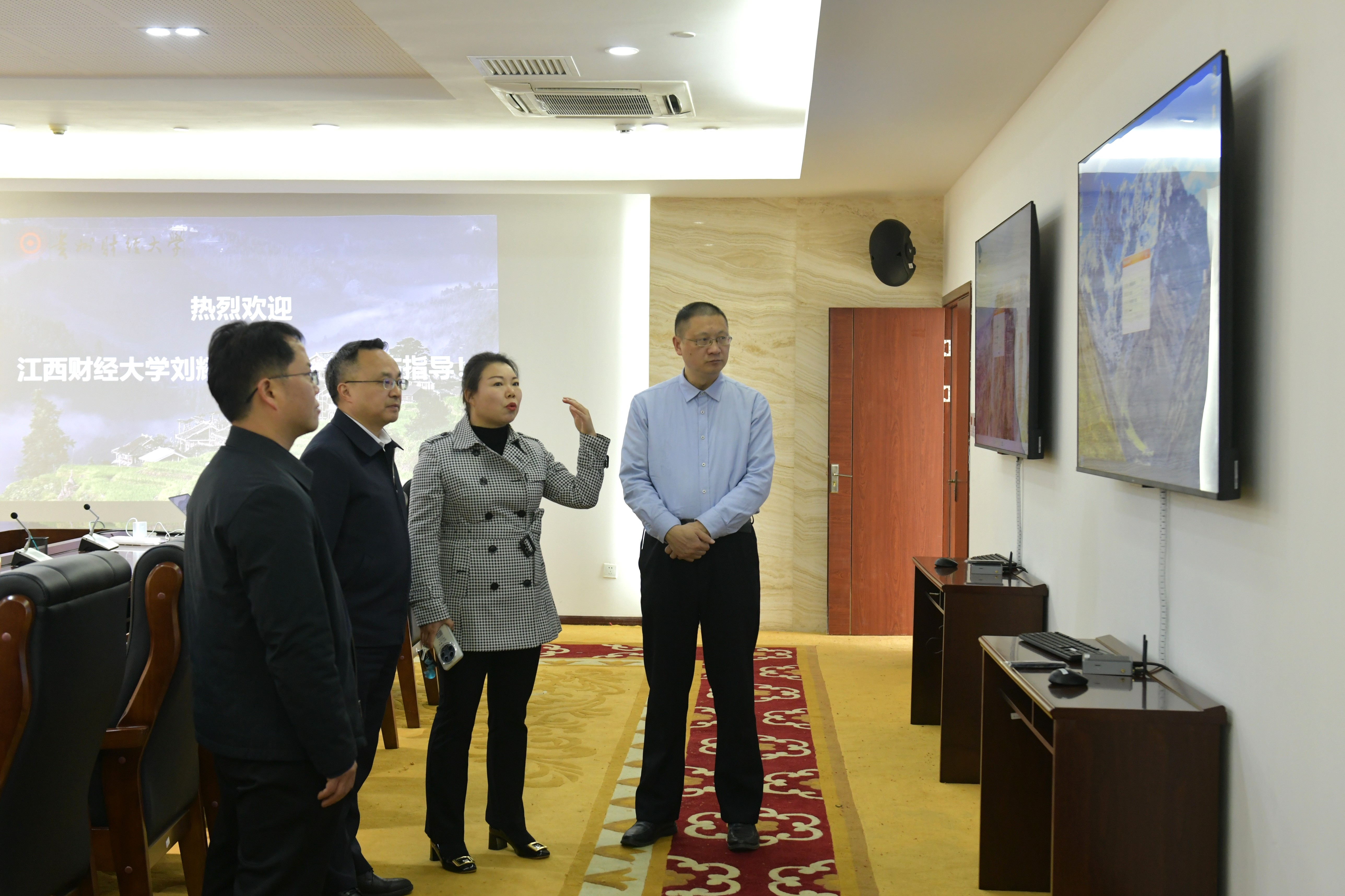 江西财经大学一行先后实地走访我校数字政务与数据治理实验室、贵州省算网融合重点实验室。调研中,两个实验室负责人分别围绕研究方向、科研进展、核心技术成果等内容作详细介绍。