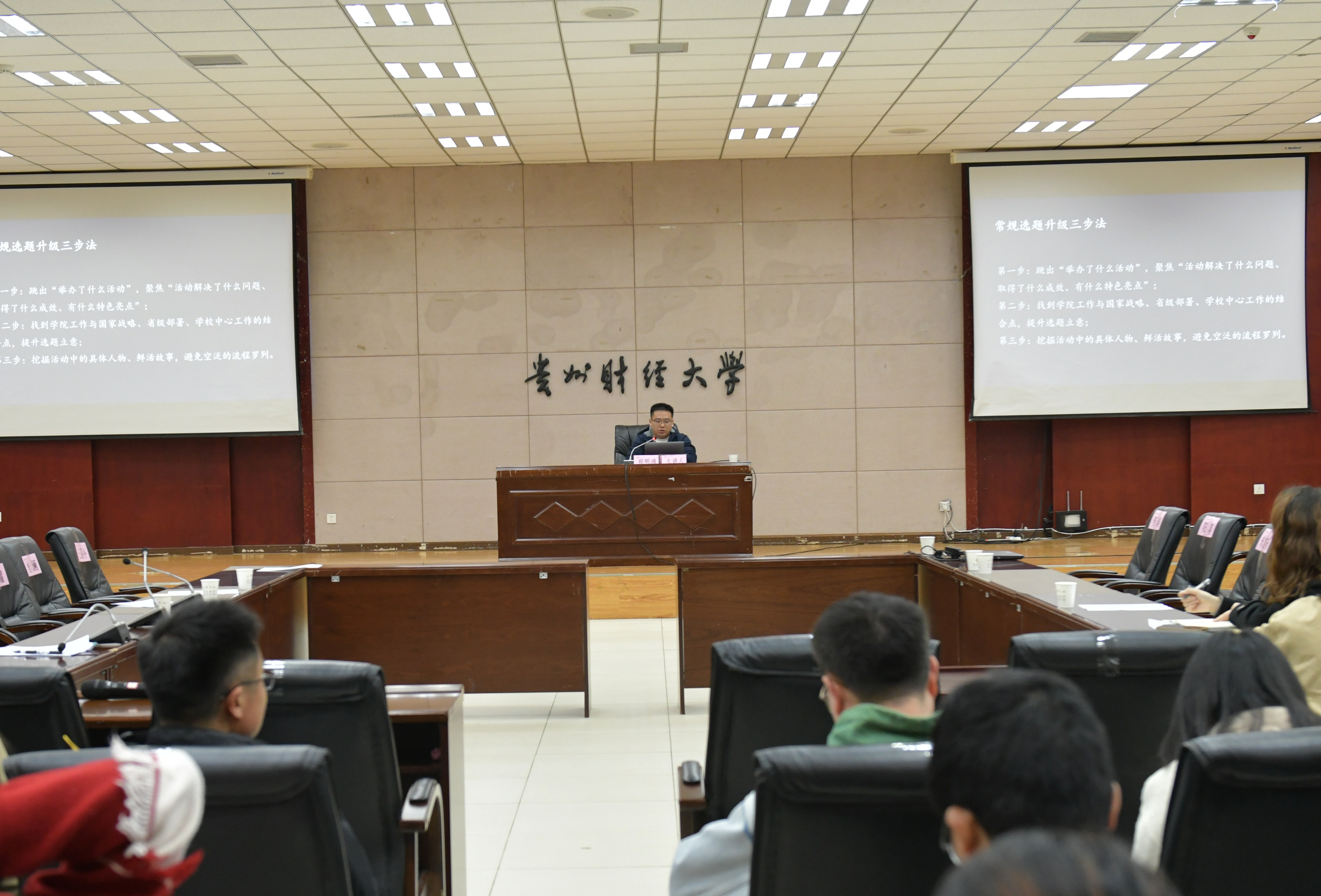 会后,新华社贵州分社记者郑明鸿对各单位、各部门宣传员开展以“校园新闻采写及差错防控”为主题的专题培训。