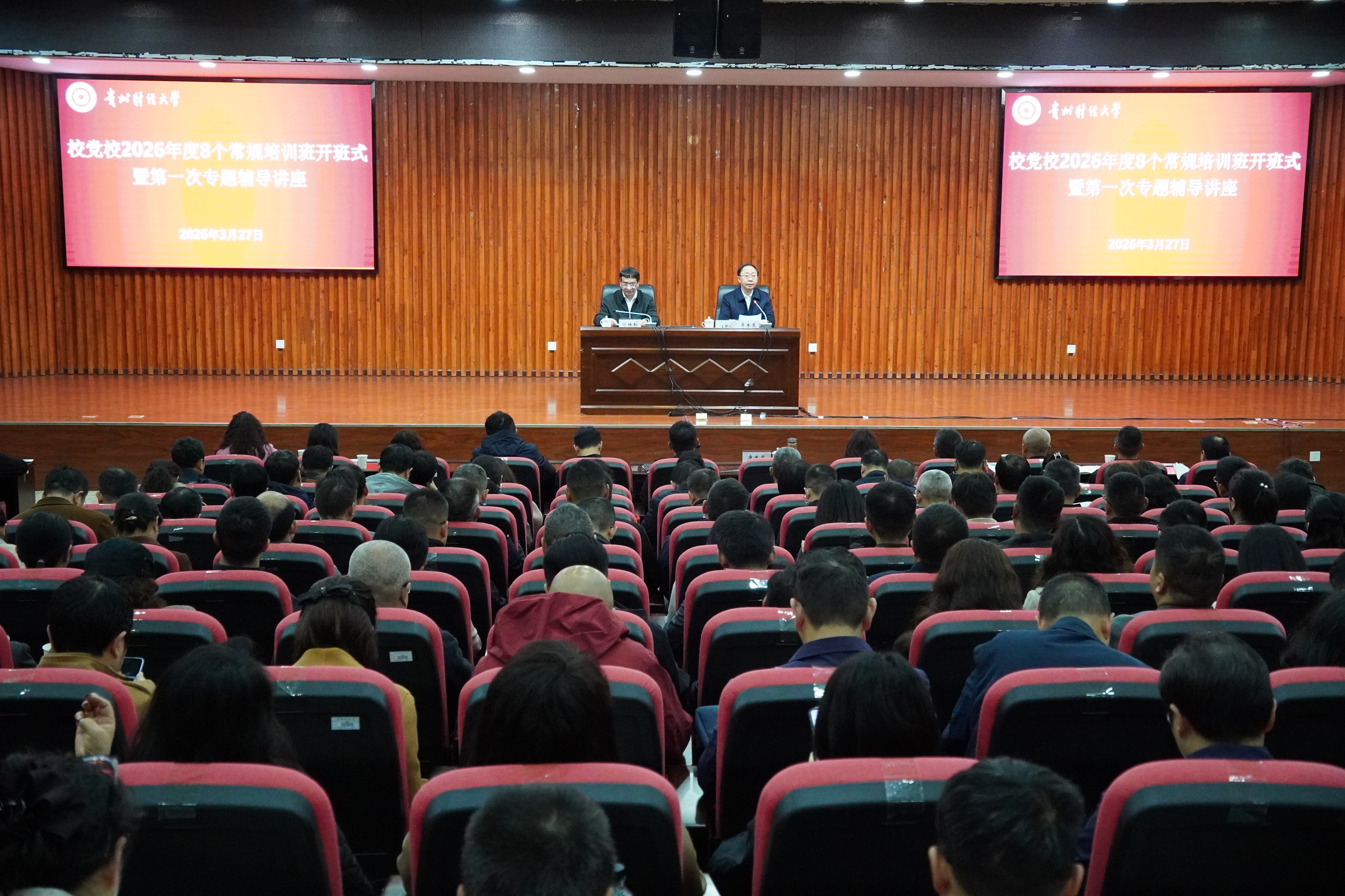 本网讯:(组织部(党校)陈禄 报道|摄影 刘正江)3月27日上午,我校2026年度学习贯彻党的二十届四中全会精神和省委十三届八次全会精神处级干部培训班、“一把手”政治能力提升培训班、年轻干部和关键岗位干部政治能力提升培训班、科级干部培训班、党务骨干培训班、党支部书记培训班、党支部委员示范培训班、普通党员示范培训班等8个培训班开班式暨第一次专题辅导讲座在图书馆报告厅举行。学校党委书记缪坤和出席开班仪式并作动员讲话,校党委副书记唐本文主持。