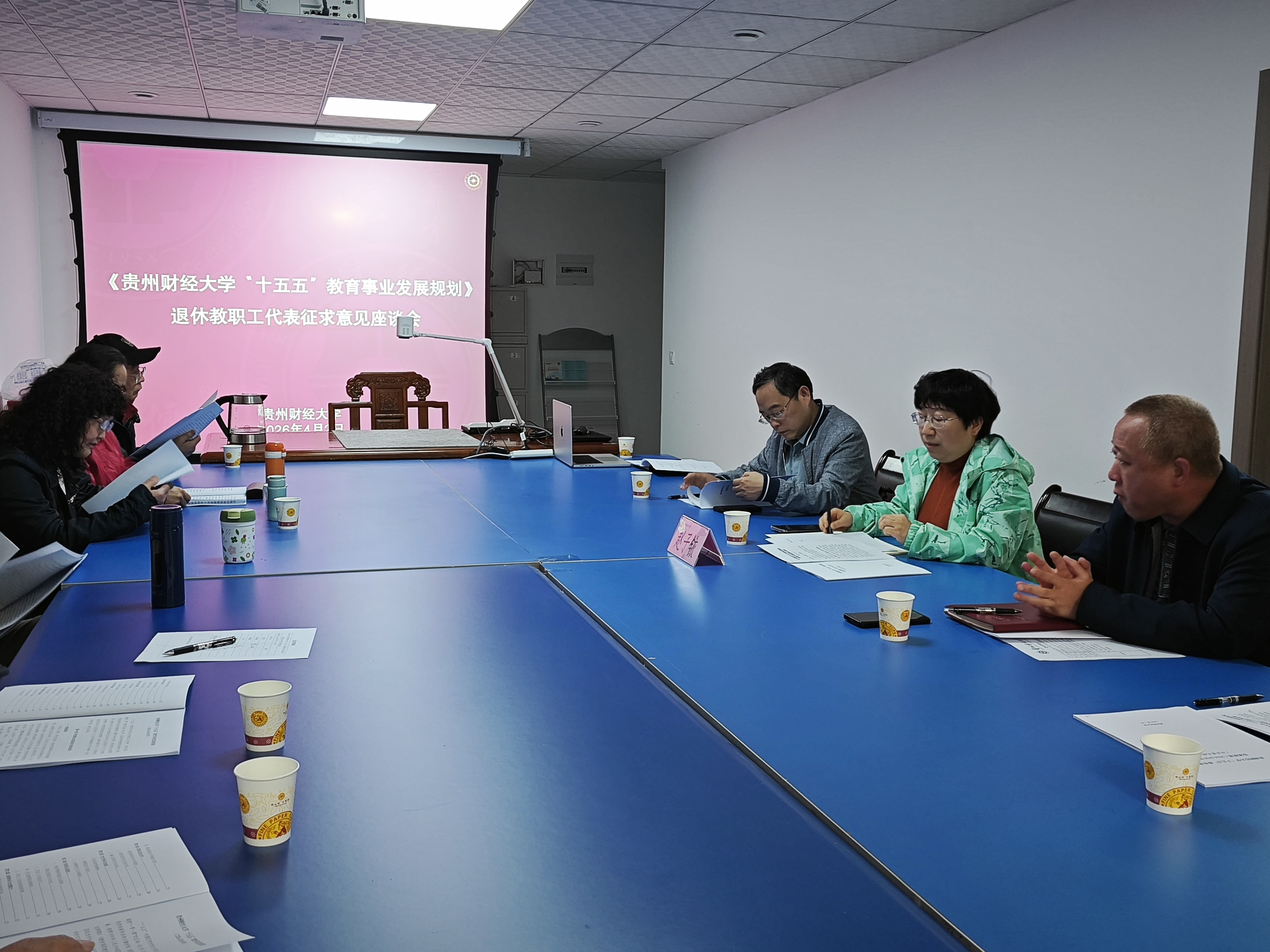 本网讯:(发展规划处(学科建设办公室) 李梦然 图文报道)为科学编制《贵州财经大学“十五五”教育事业发展规划》,广泛凝聚各方智慧,连日来,学校先后召开管理人员代表座谈会、师生代表座谈会及退休教职工代表座谈会,分类听取意见建议。副校长赵子铱主持相关会议。