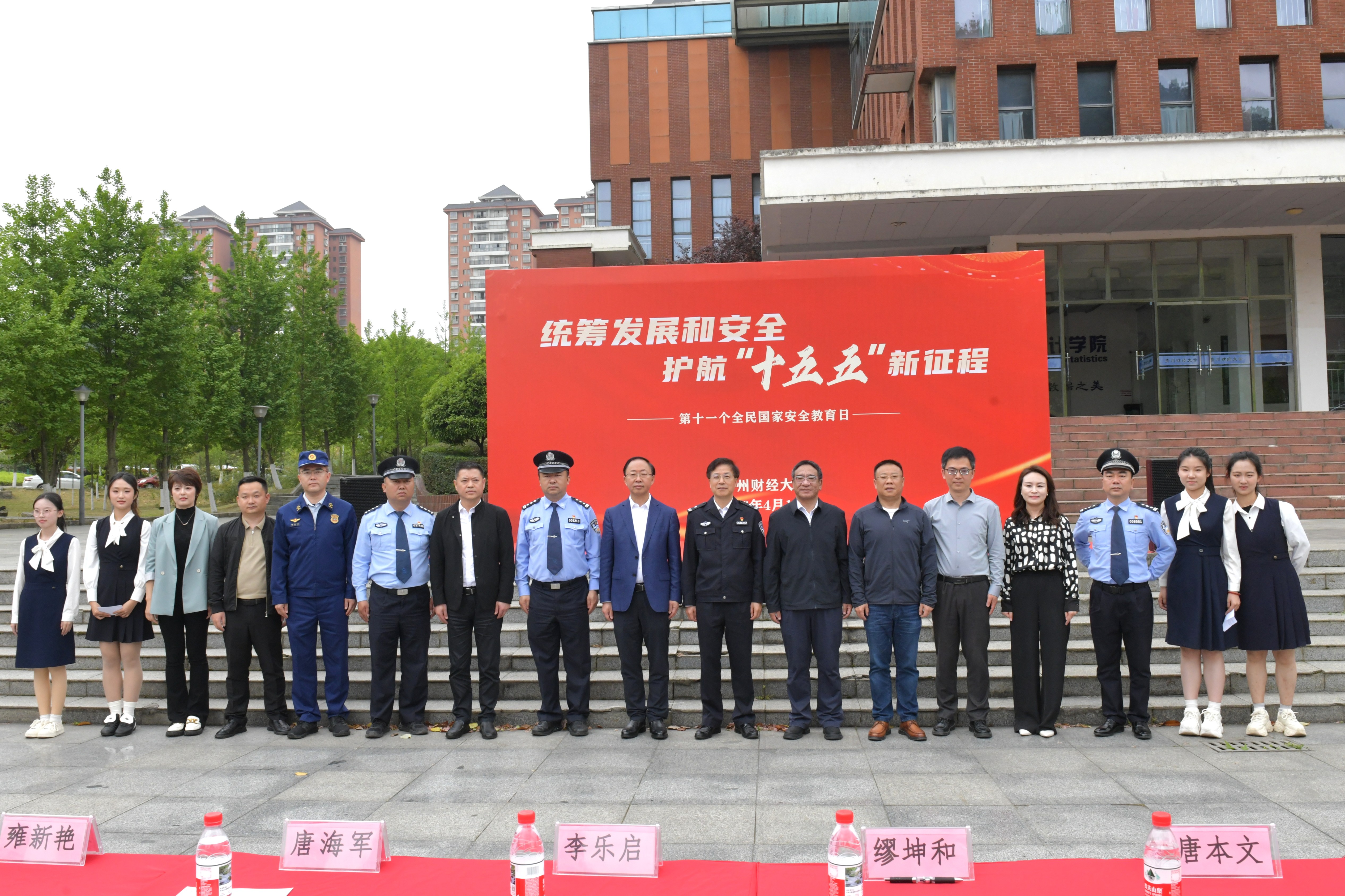 本网讯:(党委保卫工作部 张天 报道|摄影 令狐语嫣)为深入贯彻总体国家安全观,增强全体师生国家安全意识和素养,切实筑牢校园安全防线,4月15日上午,学校在西区五四广场举行“4·15”全民国家安全教育日系列活动启动仪式。校党委书记缪坤和,校党委副书记唐本文,校党委常委、副校长陈震,校党委常委、党委宣传部(精神文明办公室)部长(主任)雍新艳;贵阳市、贵安新区有关部门负责同志;校各单位负责同志、教师代表、学生代表参加启动仪式。启动仪式由陈震主持。
