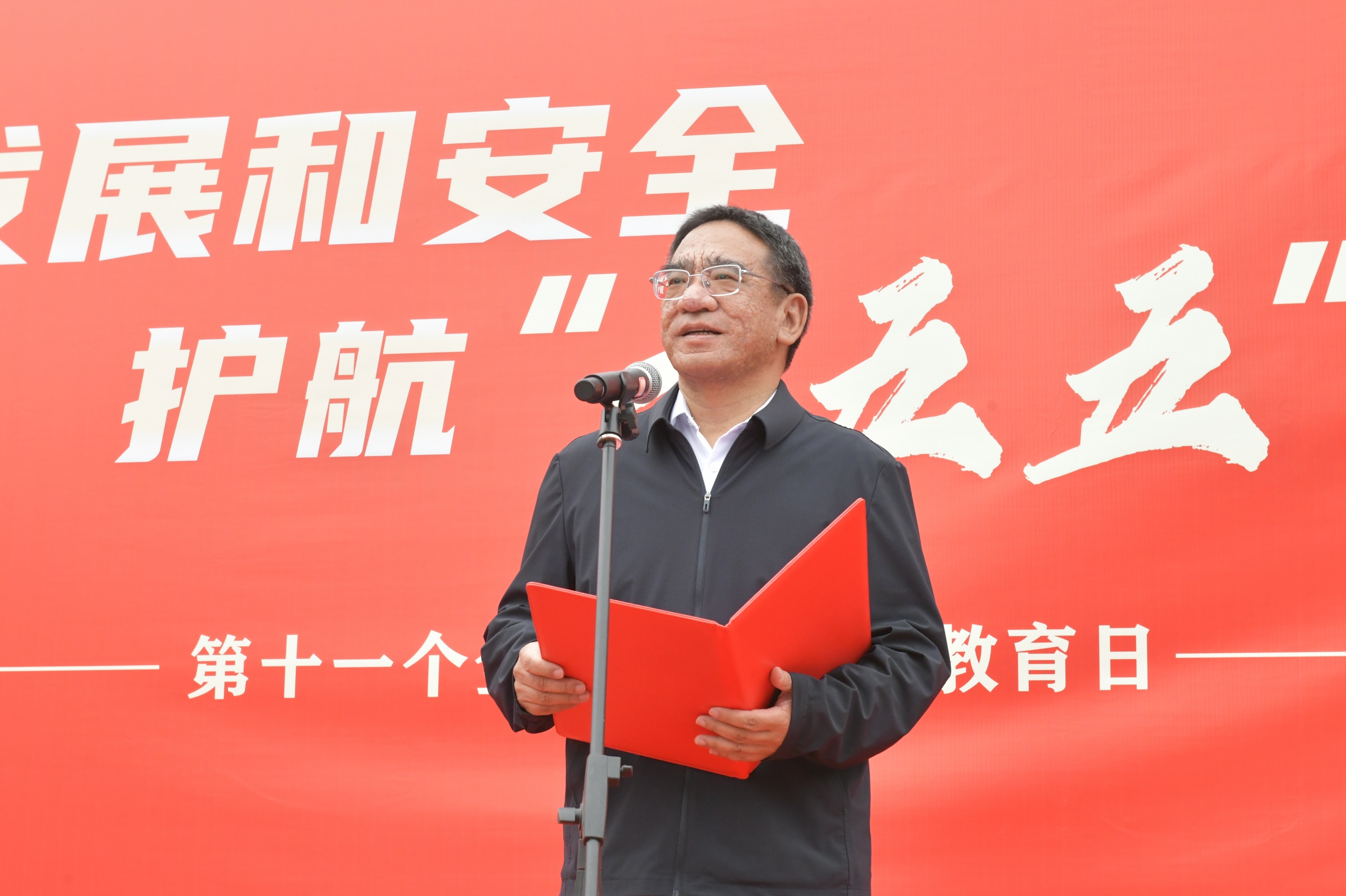 缪坤和致辞。他指出,统筹做好发展和安全,是新时代治国理政的重大战略部署,更是护航“十五五”新征程、实现民族复兴的根本保障,广大师生要树牢总体国家安全观,增强国家安全意识和素养,为“十五五”时期高质量发展筑牢安全屏障。他结合实际对全校广大师生提出三点希望:一是希望广大教职工立足本职岗位,将国家安全教育融入教育教学、管理服务全过程,引导师生树立正确的国家安全观,当好国家安全的“引路人”;二是希望同学们主动参与各类国家安全宣传教育活动,认真学习国家安全知识和《中华人民共和国保守国家秘密法》等相关法律法规,增强安全防范意识和自我保护能力,当好国家安全的“践行者”;三是希望全校师生以此次启动仪式为契机,主动传播国家安全理念,带动身边人共同关注国家安全、维护国家安全,当好国家安全的“传播者”。