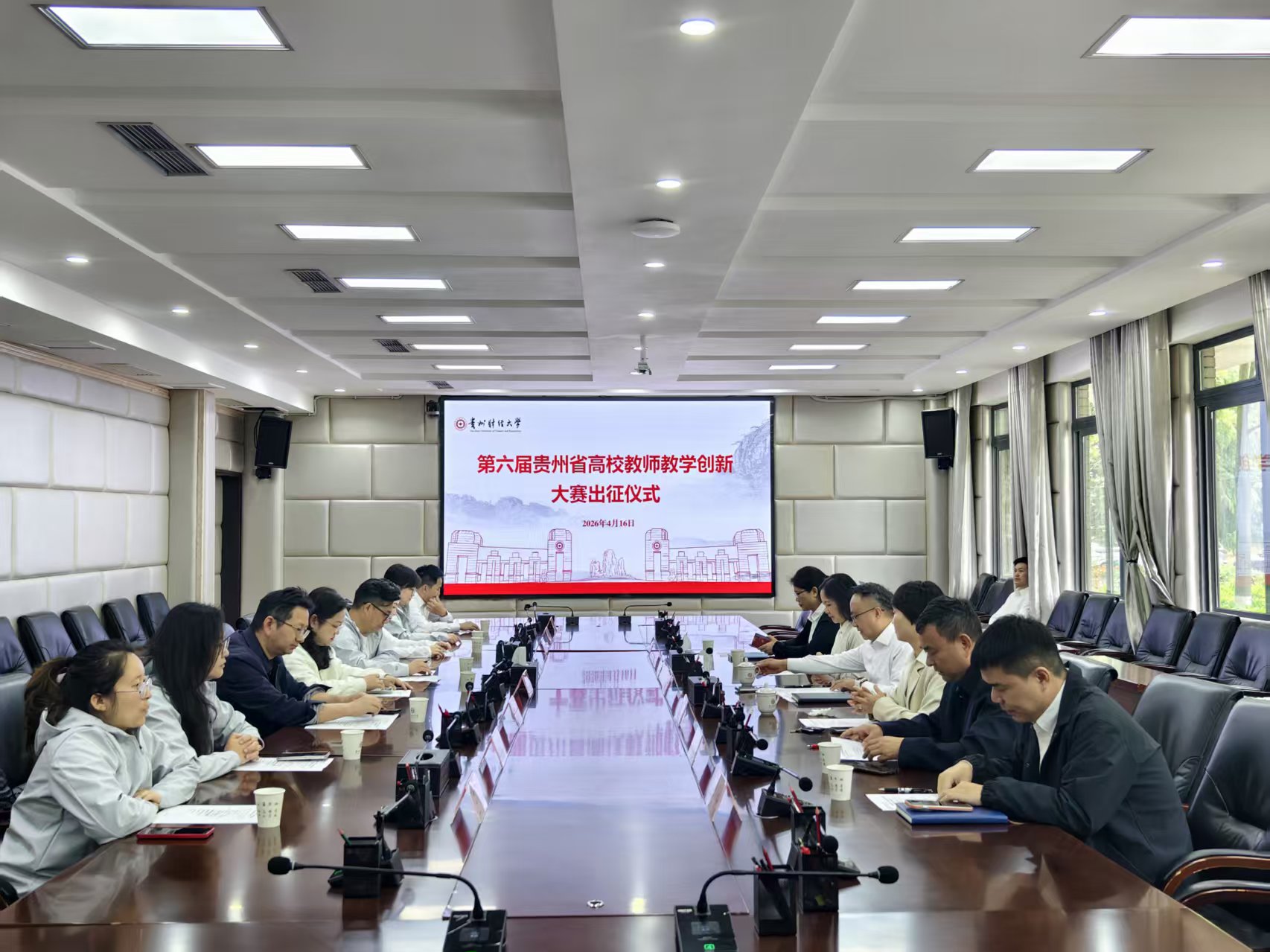 本网讯:(教务处(大学生创新创业管理办公室、实验教学部) 陈暑珍 图文报道)4月16日上午,学校在立德楼举行第六届贵州省高校教师教学创新大赛出征仪式,校党委常委、副校长李烨,校党委常委、副校长徐艺出席,党委教师工作部(处)、教务处、高等教育研究与评估中心负责人、参赛教师、参赛教师所在学院主要领导参加出征仪式。