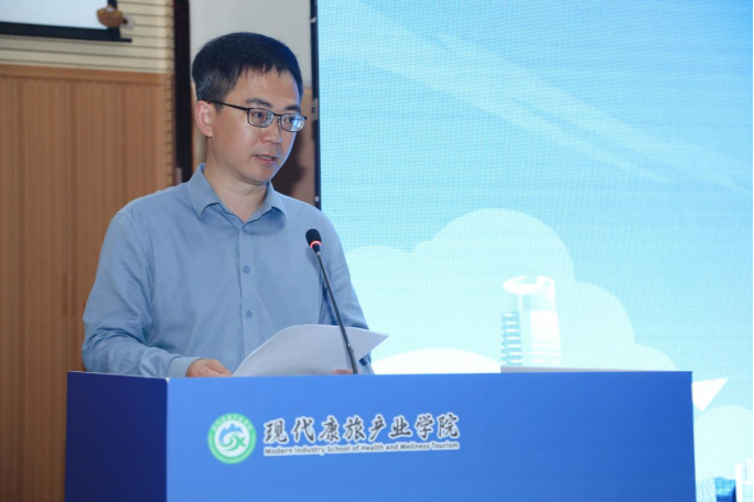 陈震在会上致欢迎辞。他代表学校对出席活动的企业嘉宾、行业代表表示热烈欢迎,介绍了学校在学科建设、人才培养等方面取得的成果,强调了现代康旅产业学院紧扣区域产业发展需求,持续推进住宿文旅等相关专业人才培养模式改革,希望以本次招聘会为纽带,深化校企协同育人,为行业输送更多高素质应用型人才,实现校、企、生三方共赢。