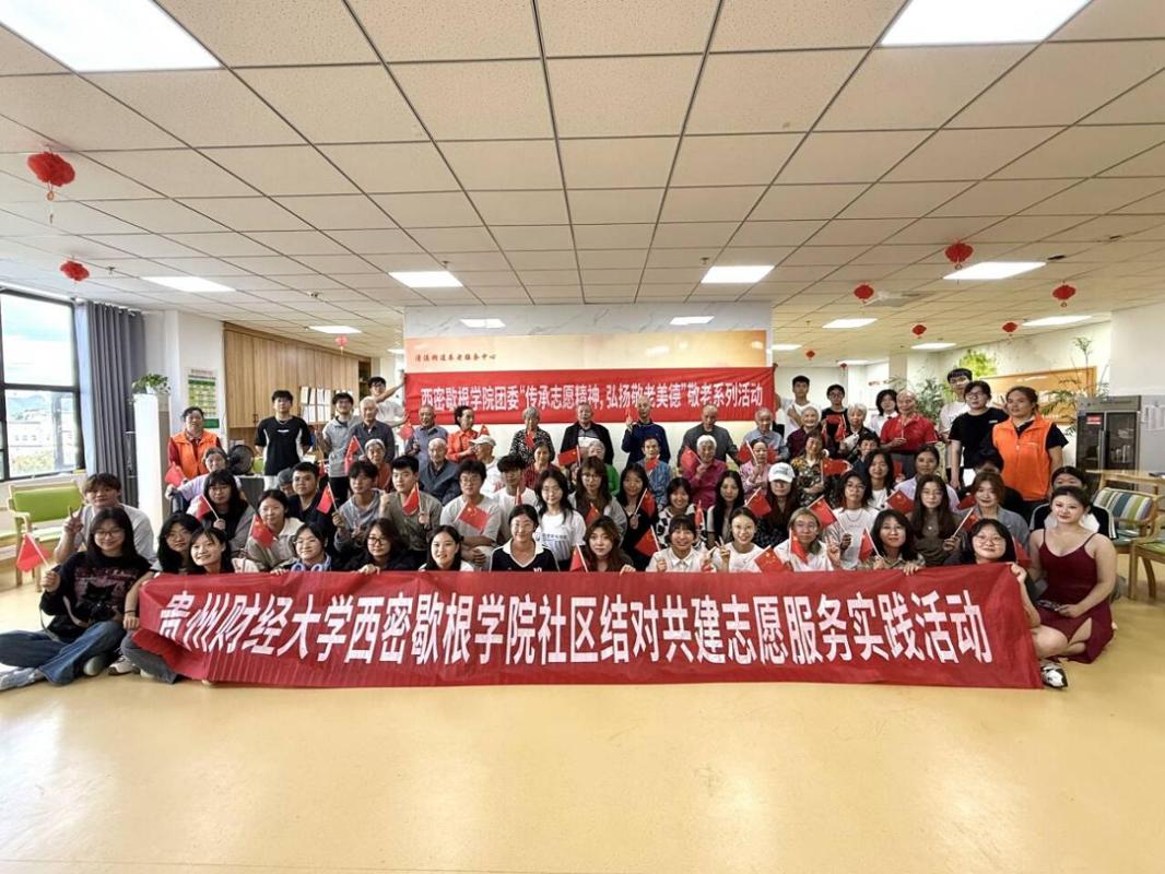 本网讯:(西密歇根学院 吴梓默 报道|摄影 张博然 卓桂涵)秋意渐浓,丹桂飘香。在国庆节与中秋节双节即将来临之际,为弘扬中华民族尊老、敬老、爱老的中华优秀传统美德,传递社会温暖与关怀。9月28日下午,西密歇根学院前往清溪街道养老服务中心,组织开展了以“青春伴夕阳,共叙家国情”为主题的文艺汇演慰问活动。本次活动共吸引了50名志愿者积极参与,他们用精彩的演出传递节日的祝福,更以真诚的倾听与陪伴,为老人们带去了温馨的慰藉与欢乐。