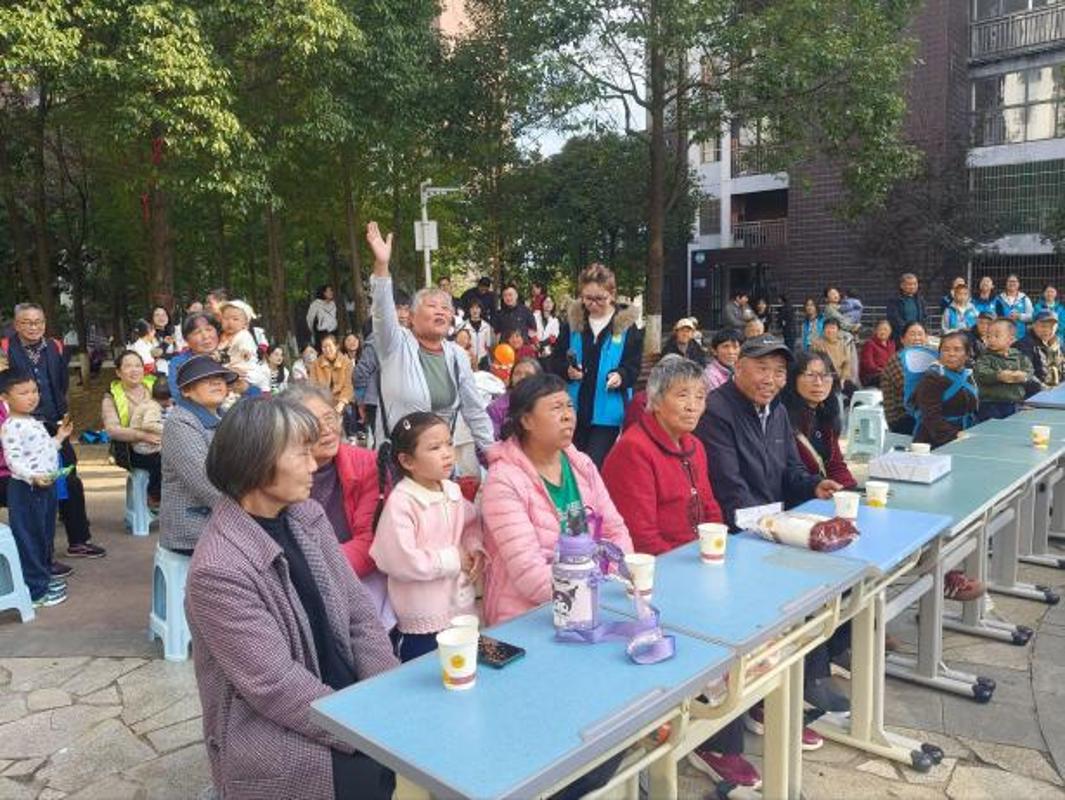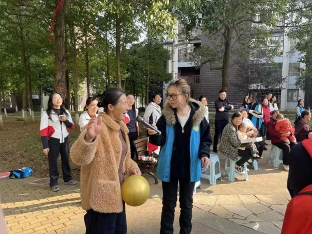 伴随《桃花朵朵开》的悠扬旋律,志愿者舞姿翩跹,如春风拂面;知识竞答环节中,老人们凝神应答,展现智慧风采。随后,《最炫民族风》的活力节拍与“你比划我猜”的默契互动相继登场,青春气息与暮年欢颜交织,演绎跨越年龄的温暖对话。