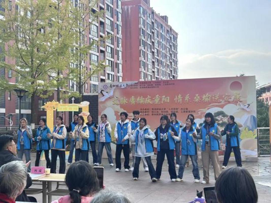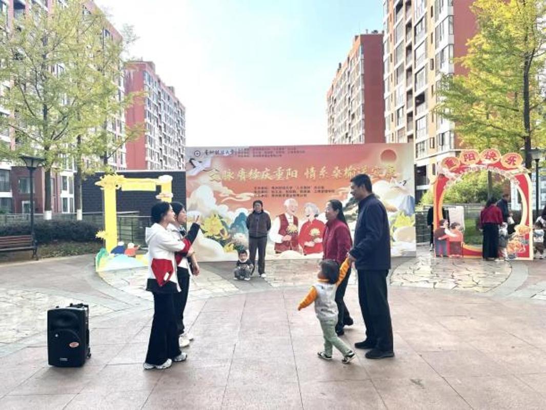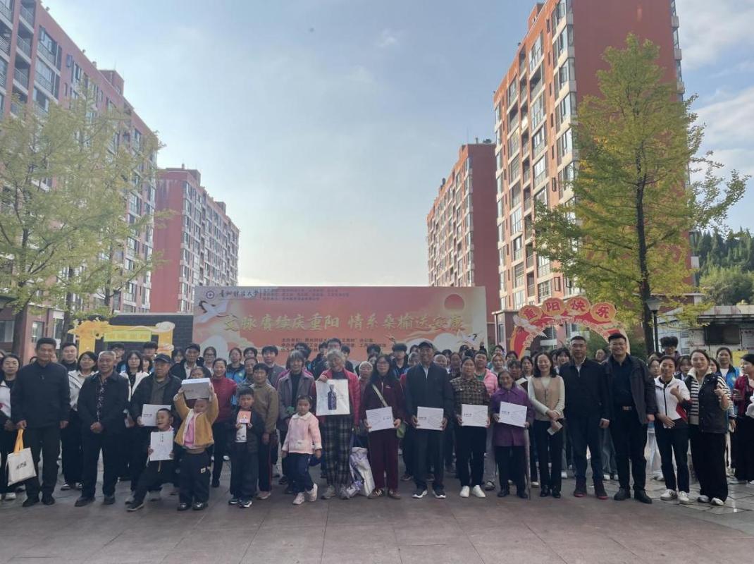 本网讯:(工商管理学院 乔桂萍 图文报道)金秋敬老情意浓,青春暖阳映重阳。为扎实推进“人文贵财”建设,不断丰富广大教职工及家属精神文化生活,10月28日,由学校“人文贵财”办公室主办,校工会、校妇联、校团委、工商管理学院承办,贵州赖茅酒业有限公司协办的“文脉赓续庆重阳,情系桑榆送安康”重阳节慰问活动在西区D17公租房社区温馨举行。贵州赖茅酒业有限公司第一党支部书记杜宗海、校工会主席罗玉江、工商管理学院党委书记杨阳、院党委副书记何瑞出席活动。