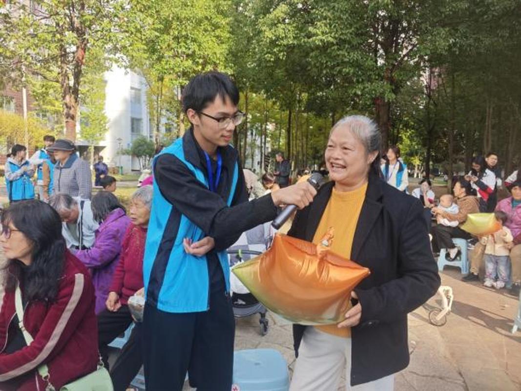 “爷爷奶奶们,重阳节快乐!”在主持人何锐、陈韶楠亲切的问候声中,活动温馨启幕。活动过程中,志愿者们悉心引导老人参与重阳主题拍照打卡,镜头一次次定格灿烂笑容,将节日的欢愉凝为永恒记忆,生动诠释“老吾老以及人之老”的深厚内涵。