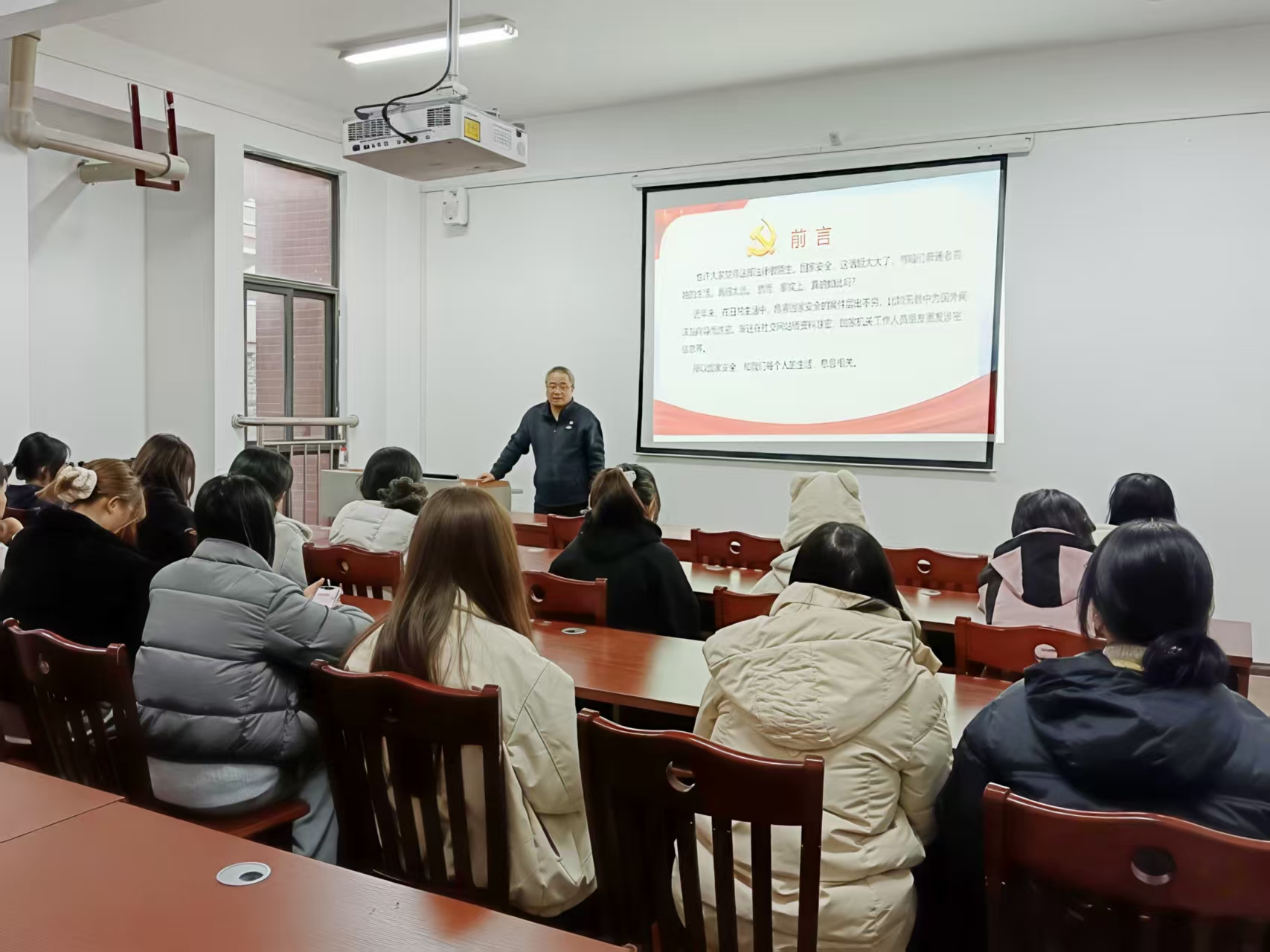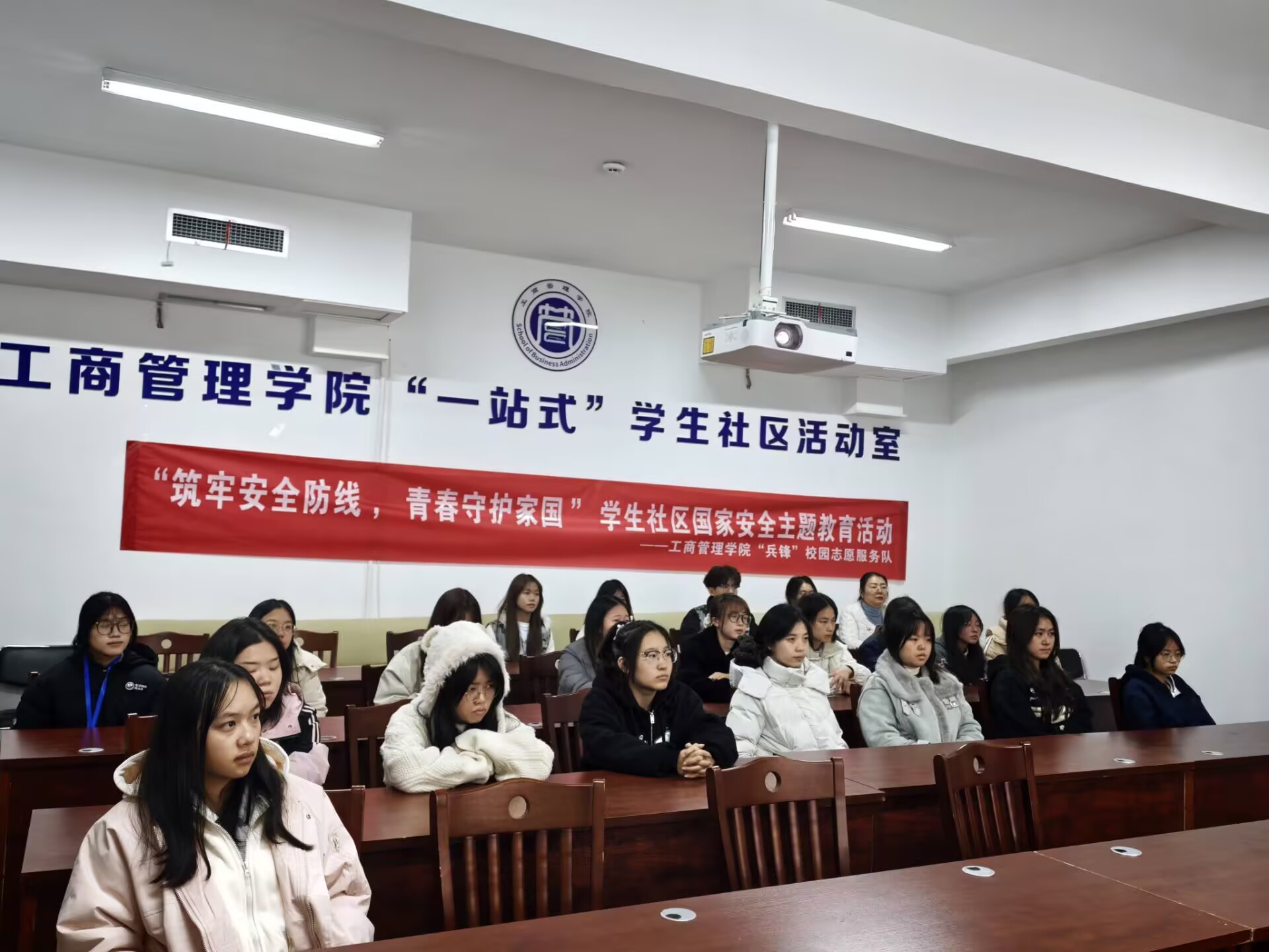本网讯:(工商管理学院 蒋小芳 图文报道)11月18日下午,工商管理学院“兵锋”校园志愿服务队在翠竹苑三栋四楼活动室举办“筑牢安全防线,青春守护家国”学生社区国家安全主题宣讲活动。