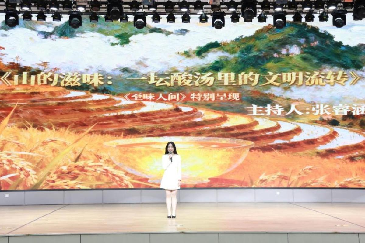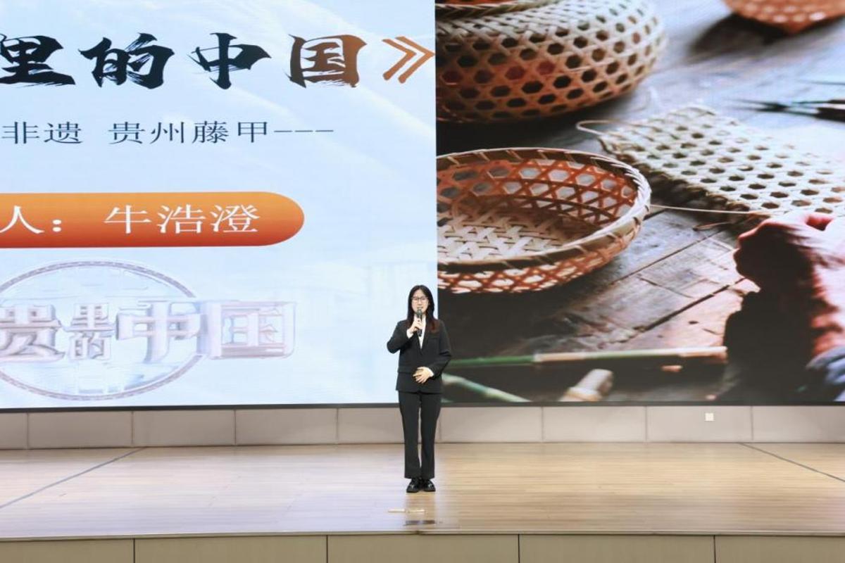 在此次比赛过程中,第一位参赛选手陈思竹带来的作品《苗族新声》,带我们走进中国少数民族苗族的世界,从“大分散、小聚居”的分布特点,到苗绣、苗药、苗银的独特魅力,让我们领略到非遗文化如高奢般的匠心与坚守。第二位选手张睿涵带来的《山的滋味:一坛酸汤里的文明流转》,将酸汤称作“可以喝的族谱”,在守正与创新的碰撞中,诠释了“最伟大的传承藏在平凡日常里”的深刻内涵。第三位参赛选手游好带来的《我们如此热爱太原》,以千年雨声、雁门长城为引,搭配陈醋、刀削面的家乡滋味,道尽对这座城市的牵挂与眷恋。第四位参赛选手牛浩澄带来的《指尖上的非遗·贵州藤甲》,伴着藤甲编织的质朴旋律,诉说着扯藤、编织、泡桐油的艰辛,让我们读懂这项古老工艺防腐防虫、防刀避箭的智慧与坚韧。第五位选手赵诗杨带来的作品《时间的回信》,以温柔笔触串联岁月故事,在时光流转中传递温暖与力量。第六位参赛选手杨博雅带来的《经典永流传》六周年歌会分享,通过《过山》对《早发白帝城》的诠释、《望岳》的歌曲演绎,让我们感受到经典诗词中豁达的胸襟与攀登的勇气。