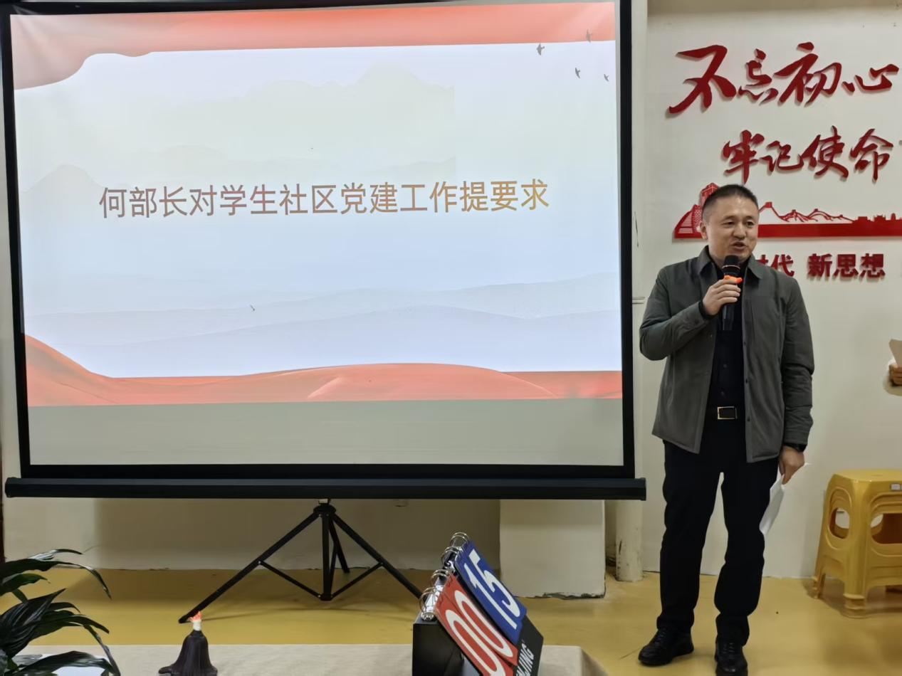 何伟在活动中聚焦“信仰、家园、担当”三个关键词,对学生社区党建工作提出要求,希望基层党支部以崇高信仰引领方向,将学生社区建设成温馨家园,激励学生党员以实际行动践行担当,用青春与智慧浇灌社区沃土,在新时代新征程中续写辉煌。