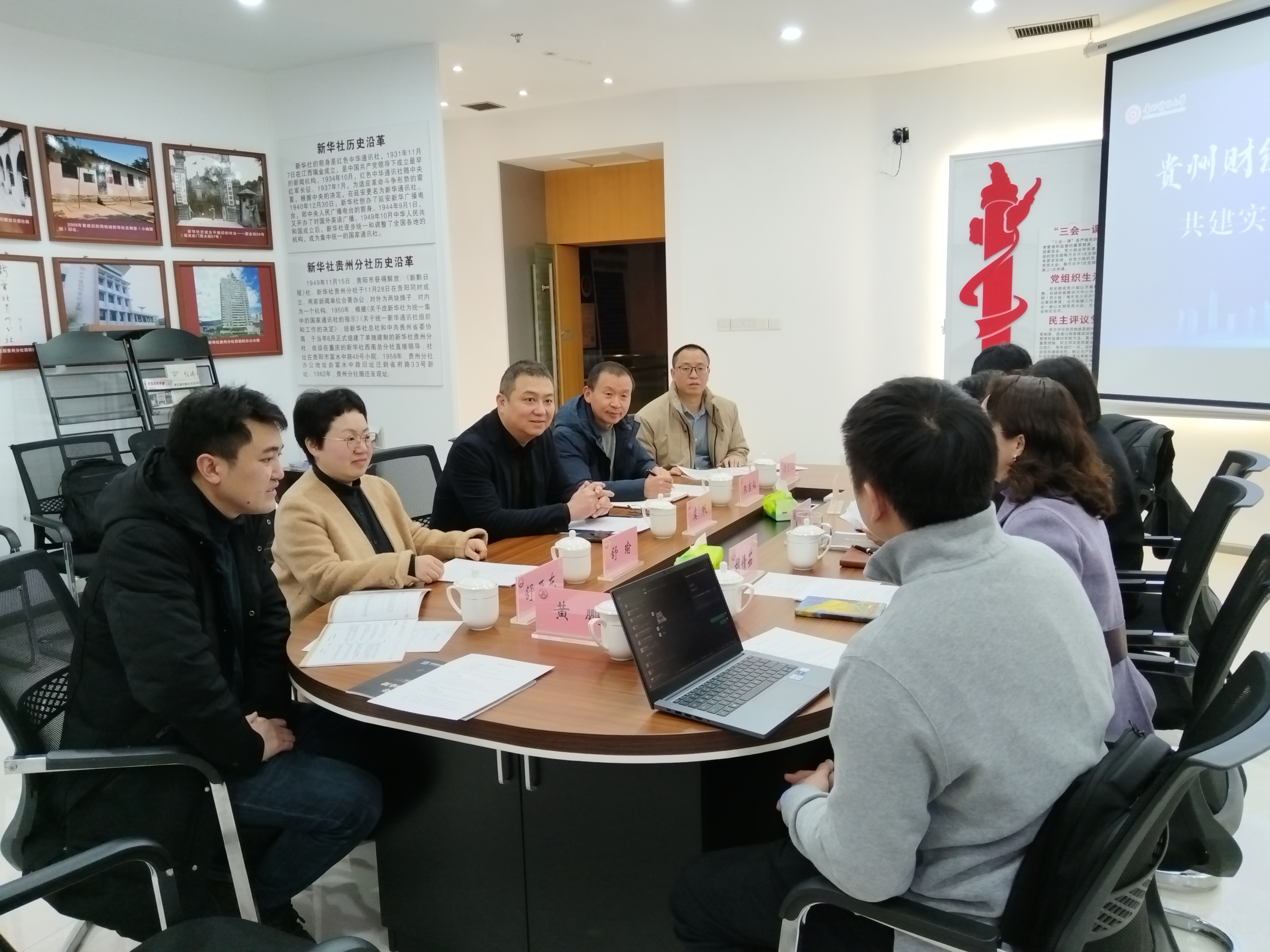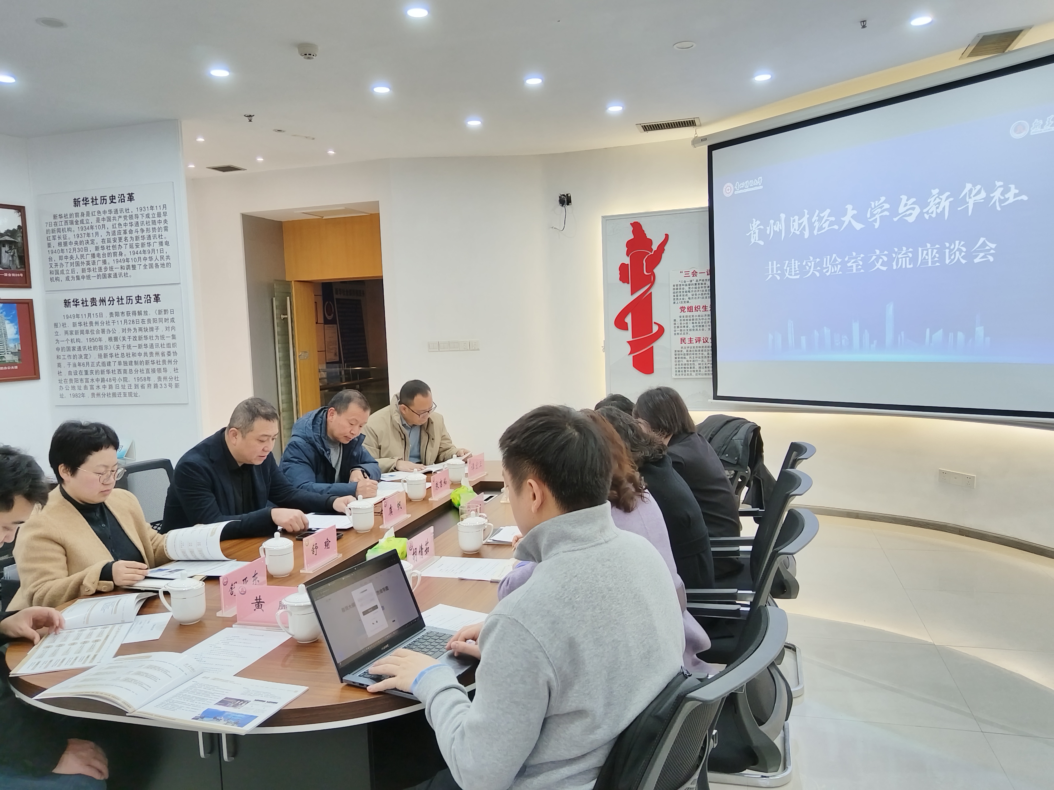 本网讯:(数学与统计学院 黄鹏 图文报道)近日,校党委委员、数学与统计学院党委书记虞帆一行赴新华社贵州分社座谈交流。新华社贵州分社副社长、分党组成员王丽出席并讲话,新华社中国经济信息社贵州经济研究中心副主任胡倩茹主持。