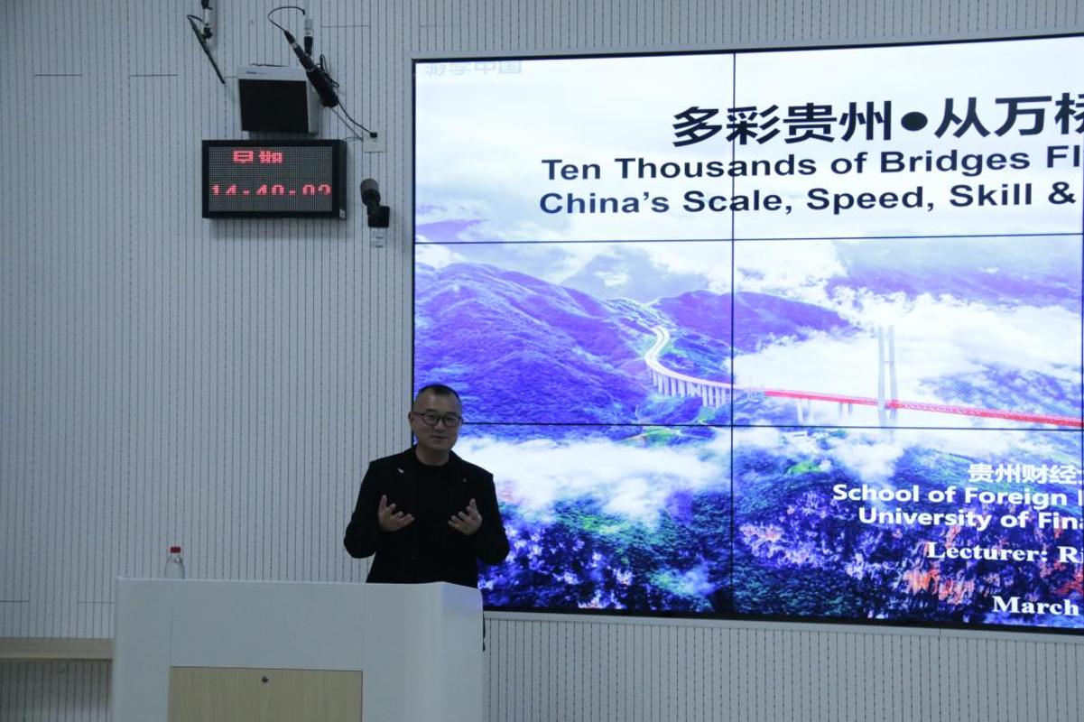 欢迎仪式结束后,研学团及相关活动人员移步乐学楼。我校行业导师、正高级工程师石连富教授开展了以“多彩贵州·从万桥飞架看中国奋斗”为主题的讲座,从贵州喀斯特地质条件下的建桥挑战、桥梁建设的规模速度与技术突破,到“6M一体化”建设方案等方面,生动展示了贵州桥梁建设的非凡成就,为研学团下一站实地参访花江峡谷大桥奠定了扎实的认知基础。
