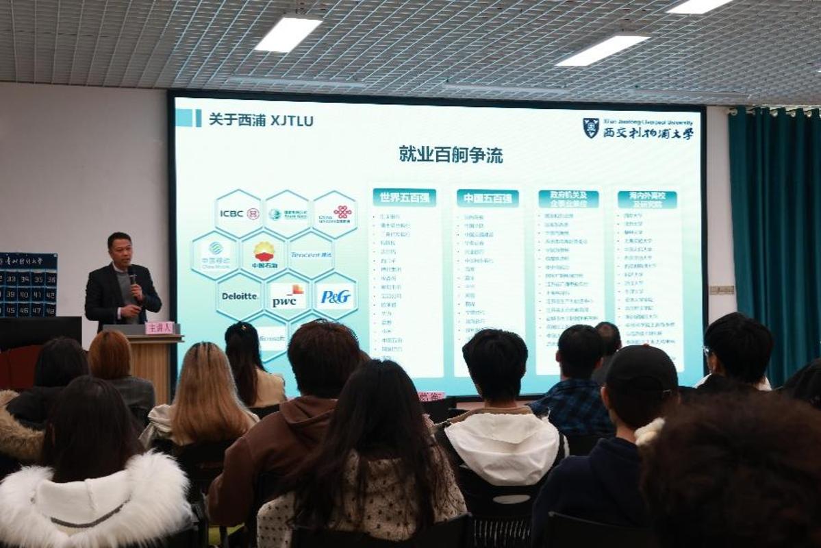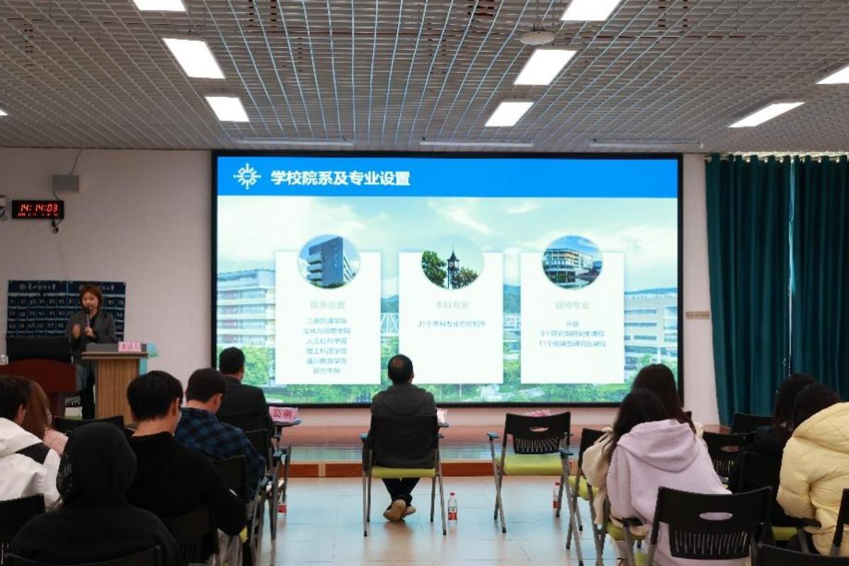 本网讯:(西密歇根学院 卓桂涵 图文报道)为帮助学生深入了解国内中外合作办学院校的研究生申请流程,科学规划备考路径,提升申研竞争力,3月17日下午,西密歇根学院在文正楼102开展名师名家进校园之“国内学校申请研究生备考全规划”学术讲座。特邀西交利物浦大学学生事务办公室副主任葛衡、北师香港浸会大学研究生院行政主任梁宝丹、北师香港浸会大学研究生院高级行政助理孙怡担任主讲,西密歇根学院党委书记、院长聂永刚,学生科科长王璐和100余名有国内申研意向的学生参加。