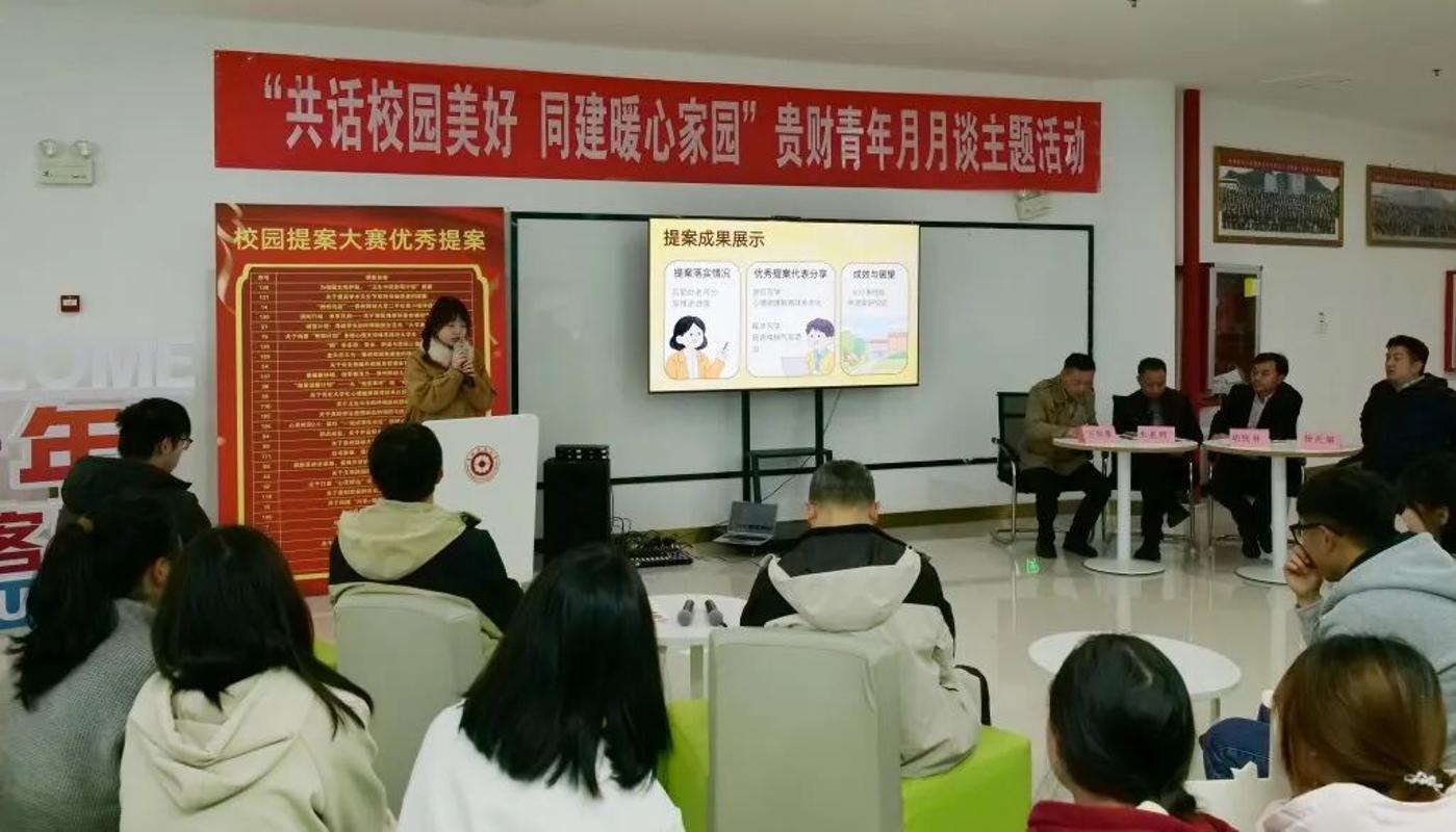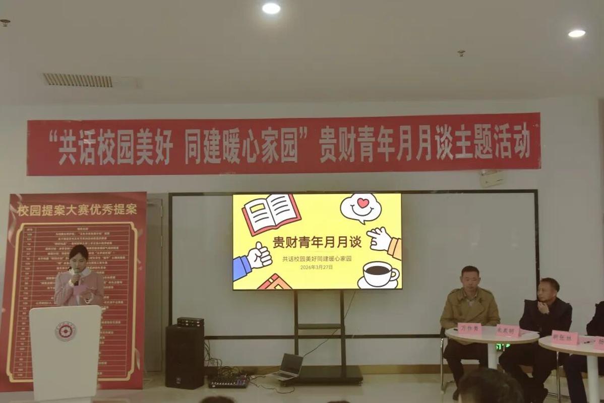 本网讯:(校团委 张洁 图文报道)春风送暖,暖意融融。为倾听青年心声、汇聚青春智慧,共筑更有温度、更具质感的校园生活,近日,由校团委、后勤处、贵州财大资产经营管理有限公司主办,贵州财经大学研究生会承办的 “贵财青年月月谈” 主题活动在学生活动中心四楼青年驿站顺利开展。