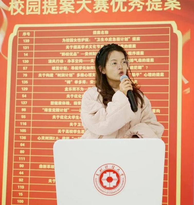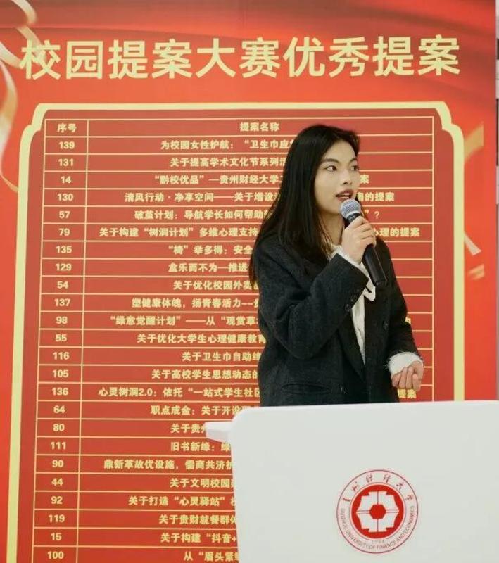 分享环节中,三位校园提案分享者依次登台,结合自身校园生活体验,分享了各自关于校园优化的思考与提案。他们的提案聚焦校园生活细节,涵盖校园环境整治、基础设施完善、服务流程优化等多个方面,既有对现有问题的精准洞察,也有切实可行的改进建议,为校园的升级完善提供了宝贵的建设性思路,赢得了现场学子的阵阵掌声。