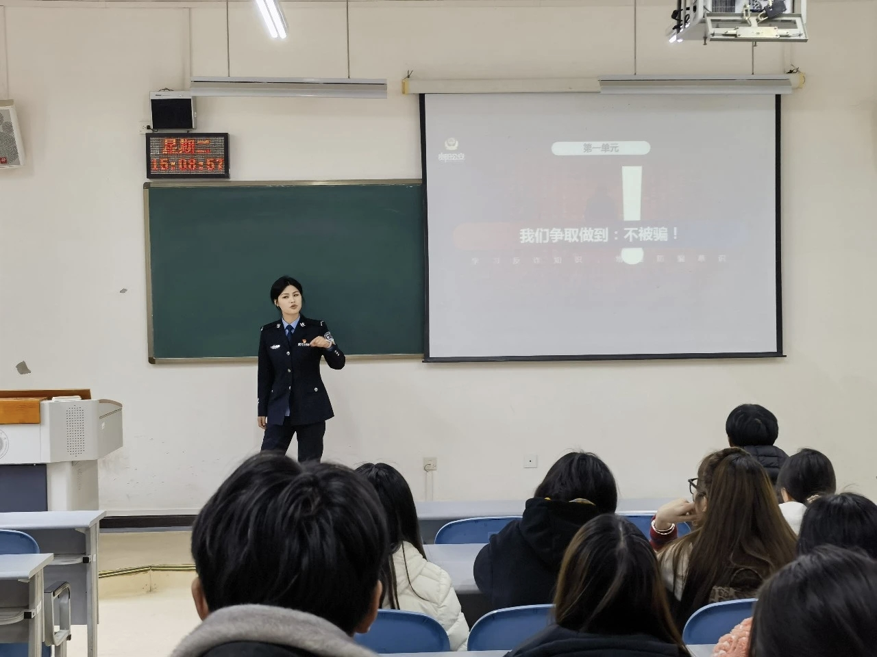宣讲过程中,公安民警和反诈教师宣讲团成员用通俗易懂的语言,详细拆解各类诈骗的作案流程、隐蔽特点和识别技巧,深入分析诈骗分子利用学生社会经验不足、防范意识薄弱等特点实施诈骗的套路,提醒学生时刻保持警惕,遇到可疑情况及时向党委保卫工作部、公安机关求助或拨打110报警电话。