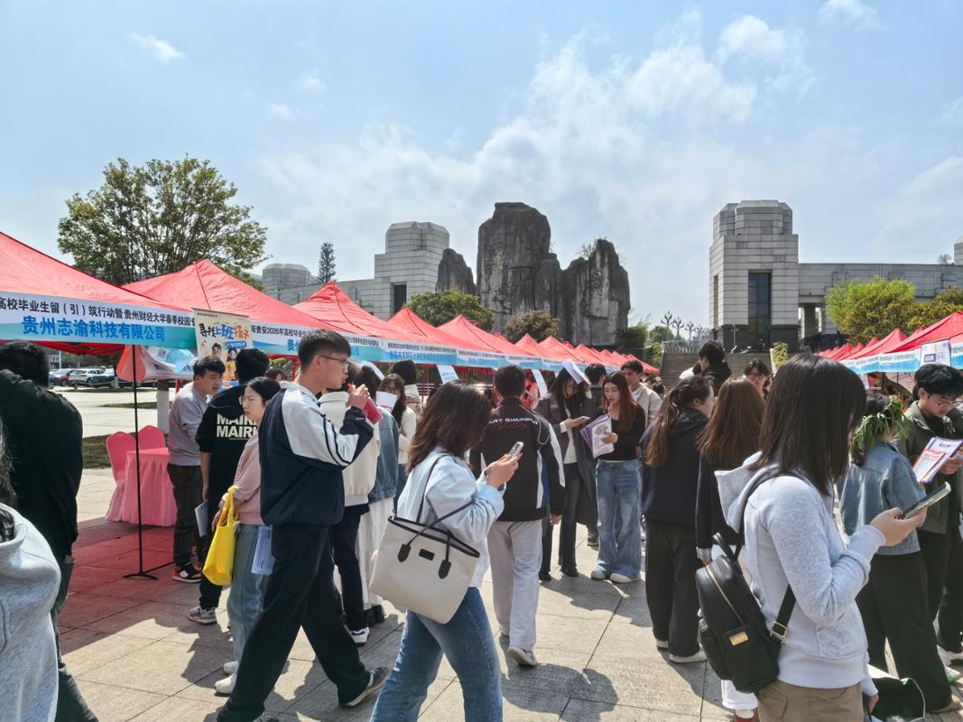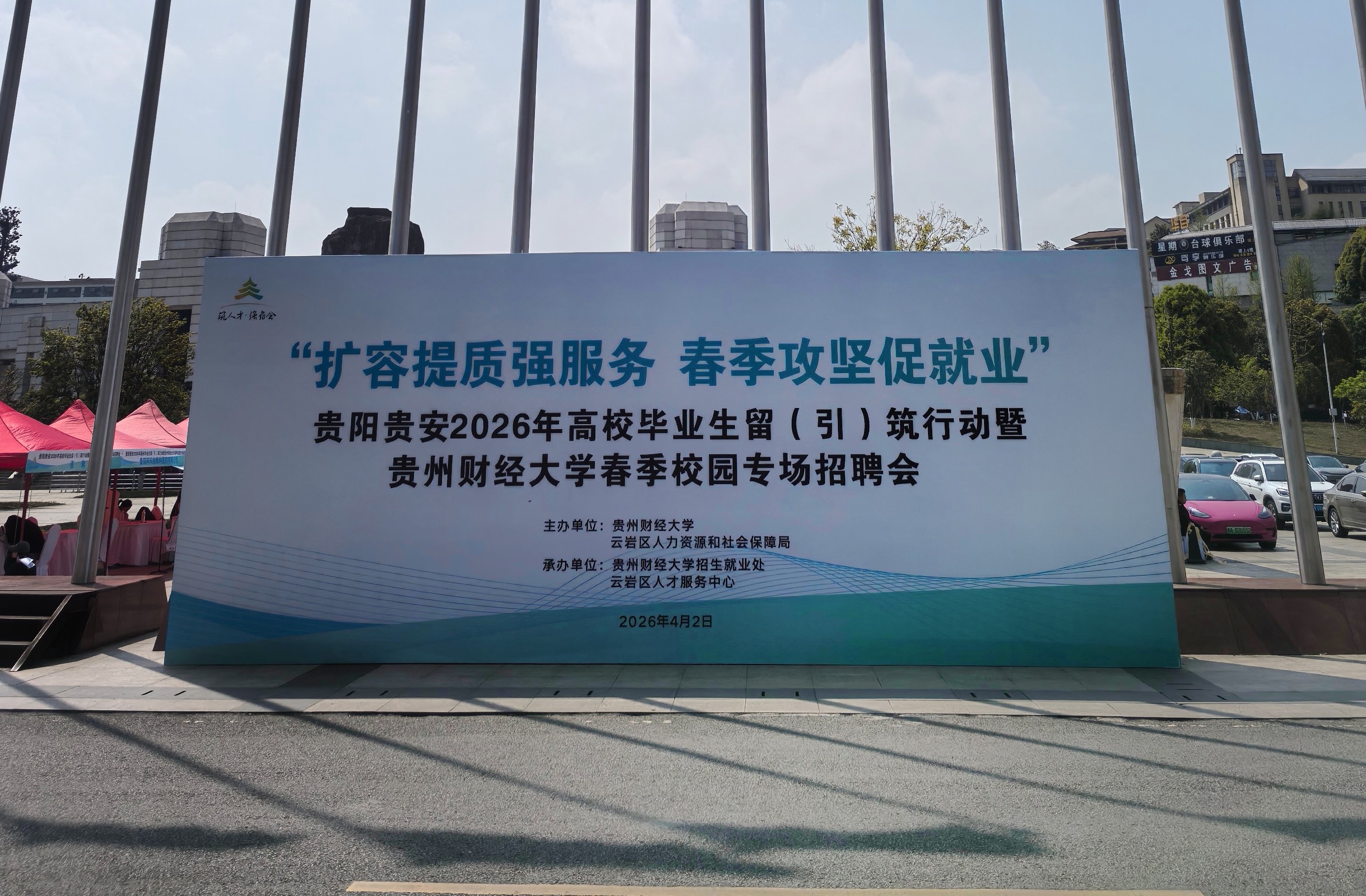 本网讯:(招生就业处 王金 图文报道)为深入贯彻落实国家及我省关于高校毕业生就业创业工作的决策部署,全力抢抓春季促就业关键窗口期,扎实推进“春季促就业攻坚行动”,我校于4月2日联合云岩区人力资源和社会保障局,在西区正德楼前广场顺利举办“贵阳贵安2026年高校毕业生留(引)筑行动暨贵州财经大学春季校园专场招聘会”,这是春季攻坚促就业系列活动的第四场,旨在持续夯实校园招聘主渠道,为毕业生与用人单位搭建精准、高效的对接平台。
