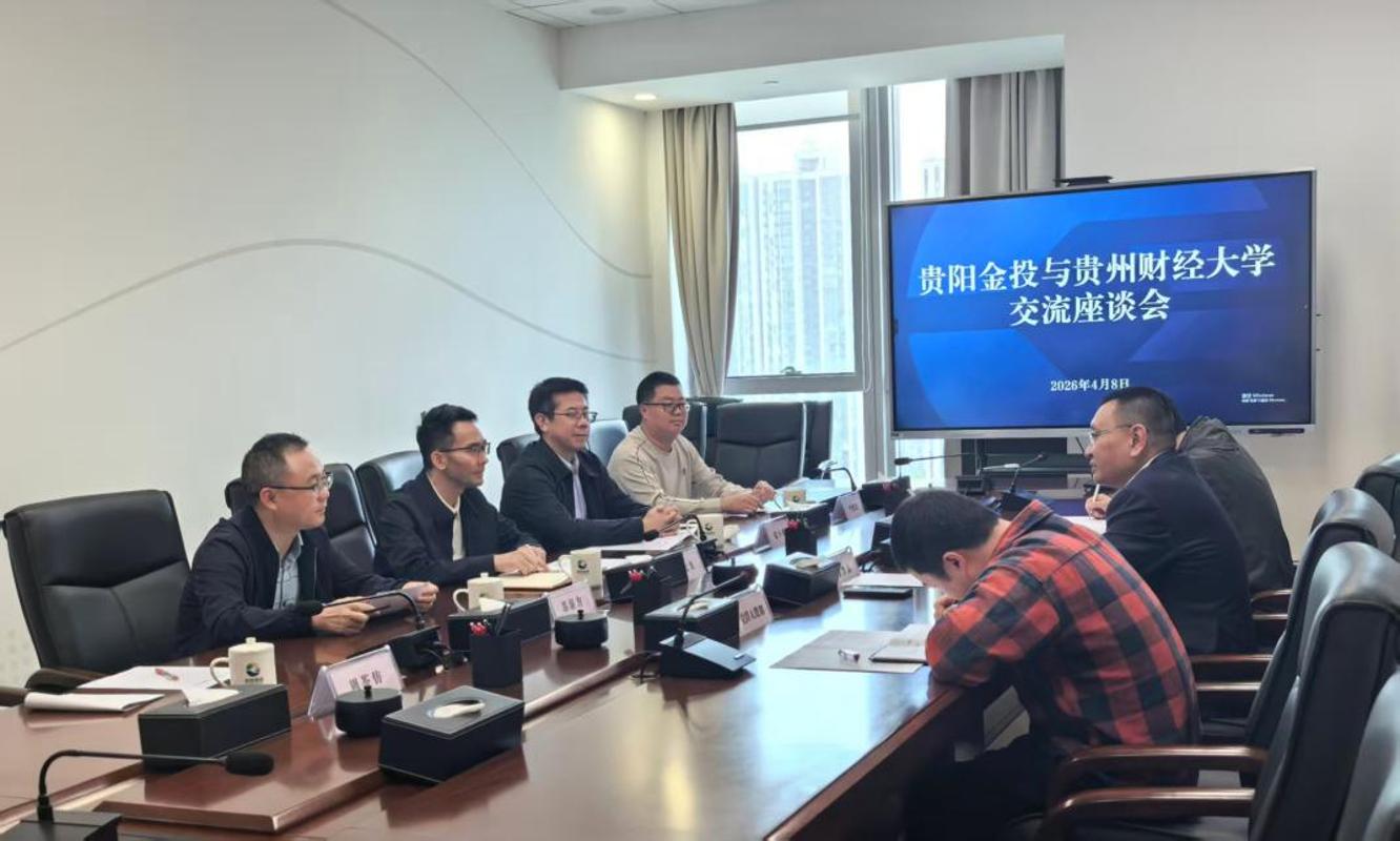 本网讯:(应用经济学院 周芩仿 图文报道)为深入贯彻落实国家关于高校毕业生就业创业工作的决策部署,深化产教融合协同育人机制,有效对接行业企业人才需求,持续拓展毕业生就业渠道,4月8日,应用经济学院党委书记李文龙、副院长张小成、苏显方教授、李晓龙副教授等一行五人赴贵阳金投投资有限责任公司(以下简称“贵阳金投”)开展访企拓岗暨校企合作交流活动。贵阳金投总经理罗黔渝、纪委书记周红辉等人热情接待并出席座谈会。