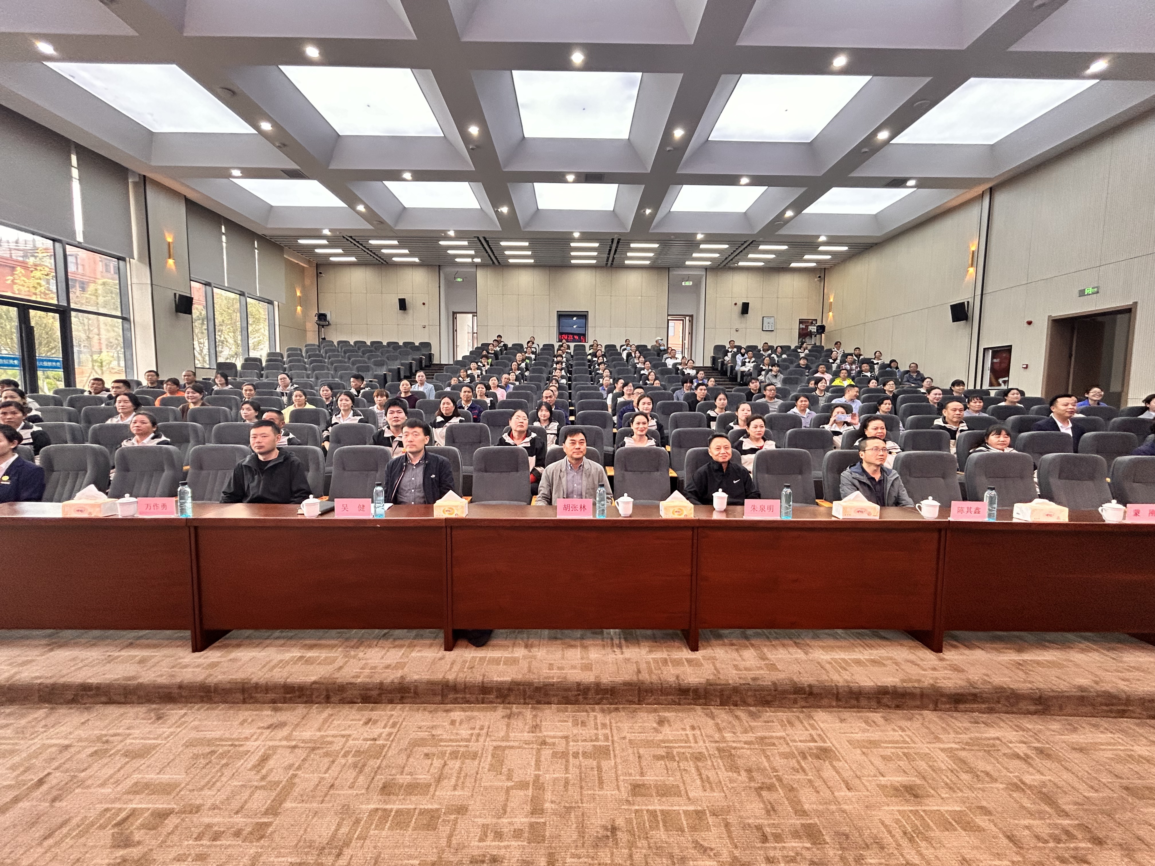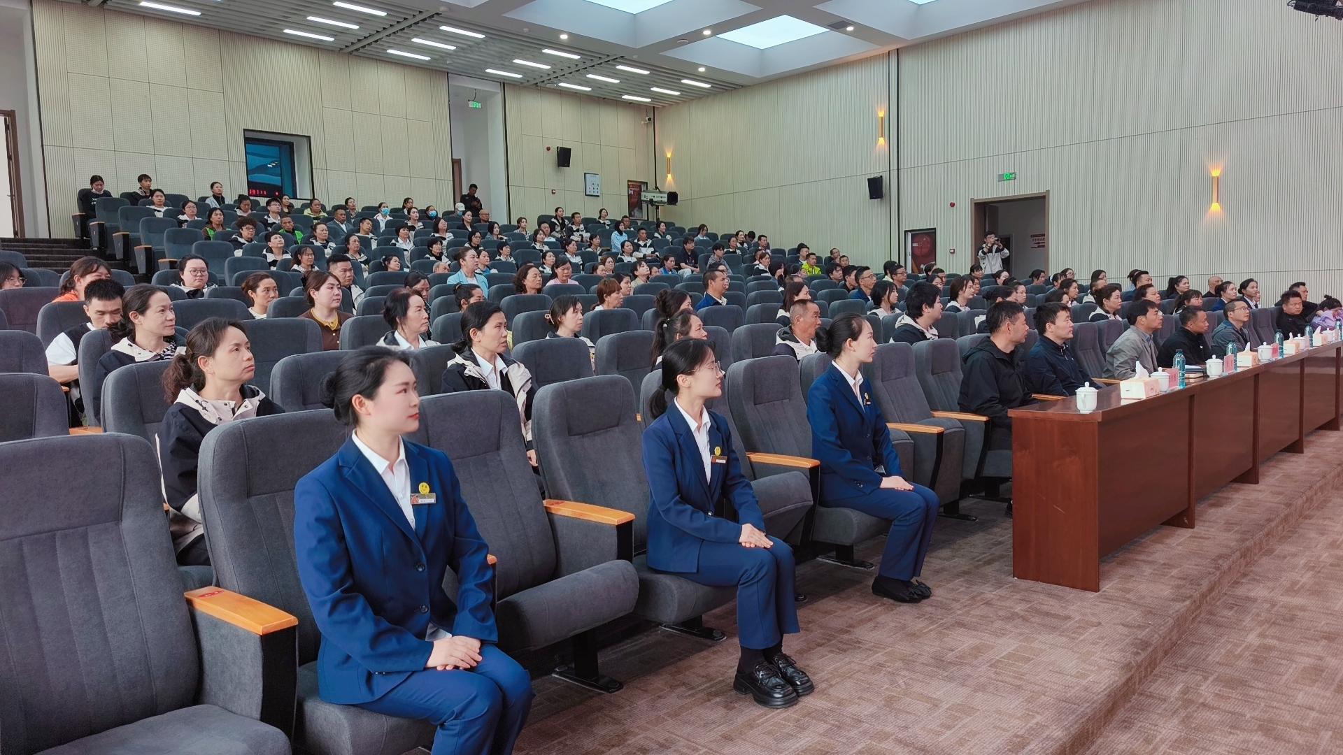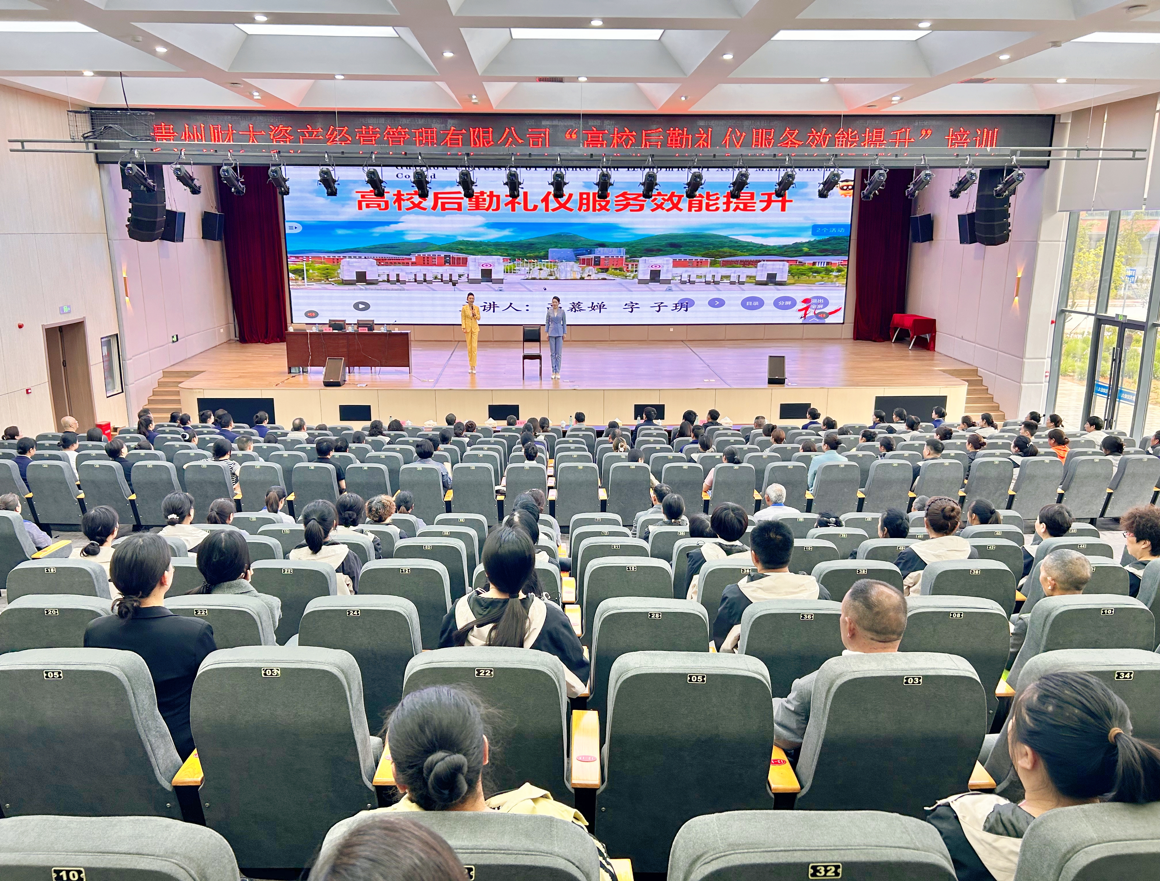 本网讯:(贵州财大资产经营管理有限公司 罗郅栋 图文报道)为切实提高高校后勤服务质量与育人效能,提升员工职业素养,打造支撑高质量校园生活保障体系的员工队伍,4月17日,后勤处、资产公司在文津报告厅联合开展“高校后勤礼仪服务效能提升”培训活动。后勤处处长胡张林、副处长陈其鑫、万作勇,资产公司总经理朱泉明、副总经理吴健、蒙刚出席培训活动,活动由吴健主持。后勤处各科室教职工及资产公司各部门员工近200人参加培训。