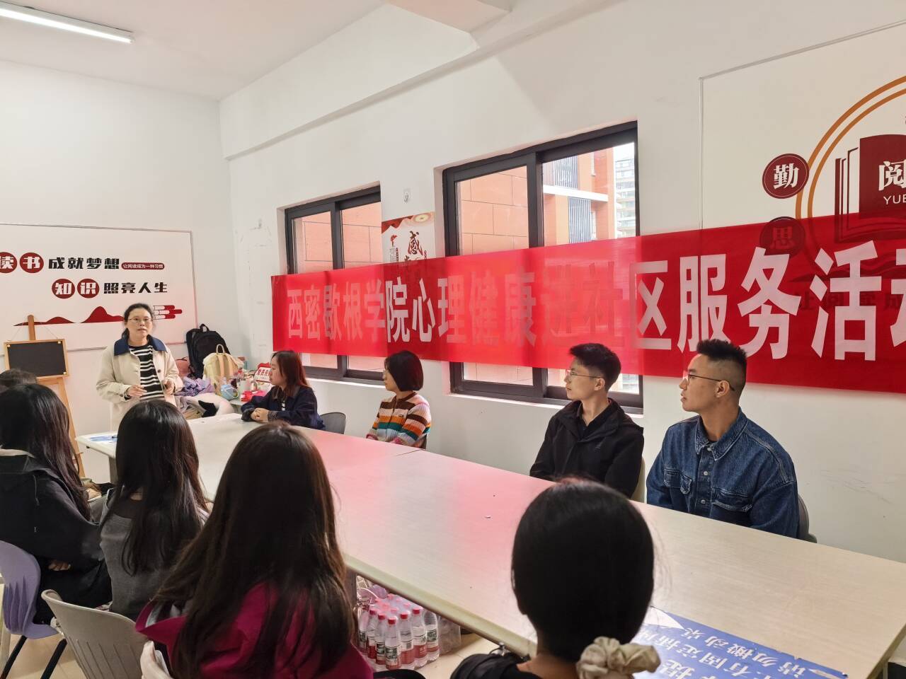 本网讯:(西密歇根学院 王芷睿 报道 | 摄影 黄思佳)在第十五届心理健康宣传教育月来临之际,4月27日,西密歇根学院在文心苑2栋4楼“一站式”学生社区开展心理健康进社区主题服务活动,学院师生积极参与,沉浸式体验心理健康活动。