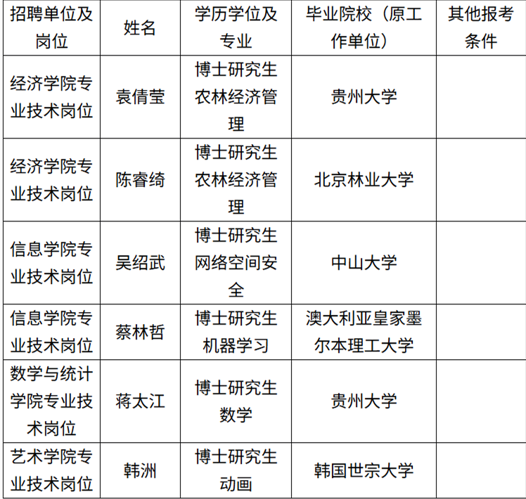 贵州财经大学2025年公开招聘事业单位工作人员拟聘人员公示(第五批)